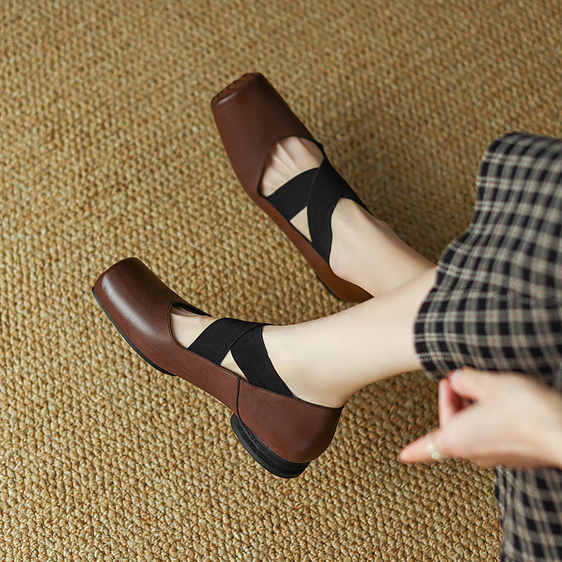 kamames kamames Pig Nose Shoes Female Spring 2024 New Inside And Outside Full Leather Retro Wind Ballet Shoes Protection