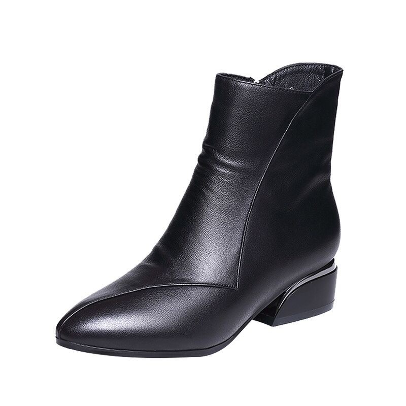 kamames kamames Size Soft Leather Fashion Boots Women 2023 Autumn And Winter New Pointed Short Boots Women Thick Heel Leather Shoes Women Fashion Boots