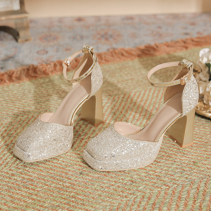 kamames kamames Thick Heel Waterproof Platform French High Heels With Hollow Not Tired Feet Breathable Wedding Shoes Bridesmaid Shoes Women's Shoes