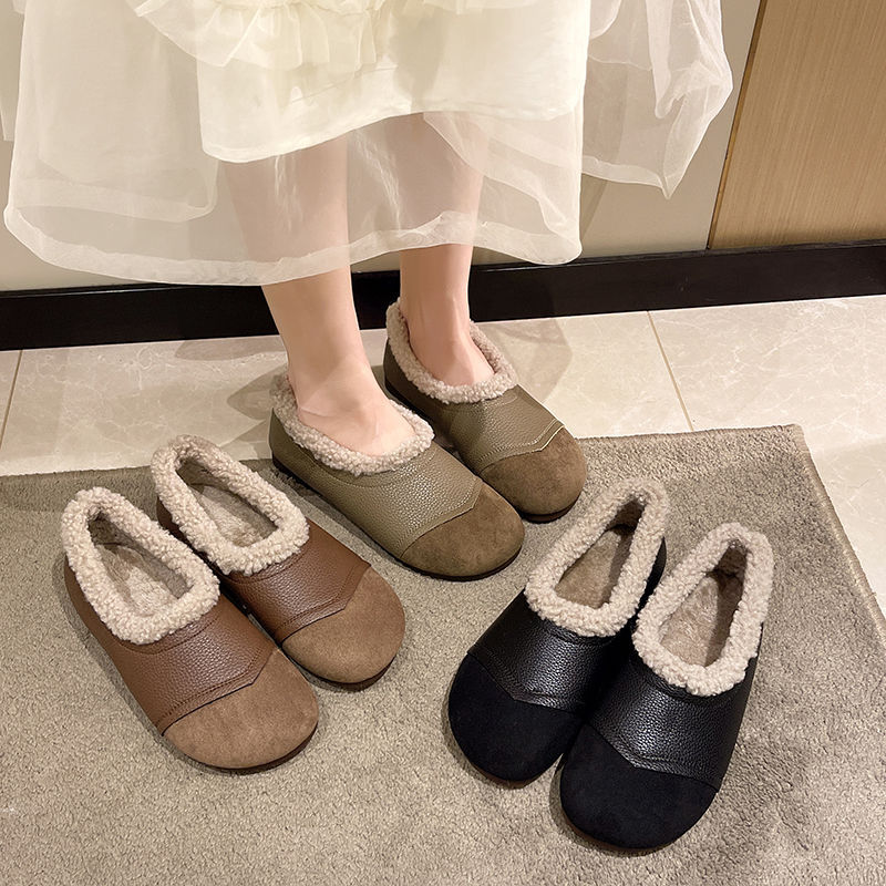 kamames kamames Velvet Bean Shoes Women 2023 Winter New Vintage Women's Shoes Round Head Soft Sole Soft Leather One Foot Pedal Warm Cotton Shoes Women