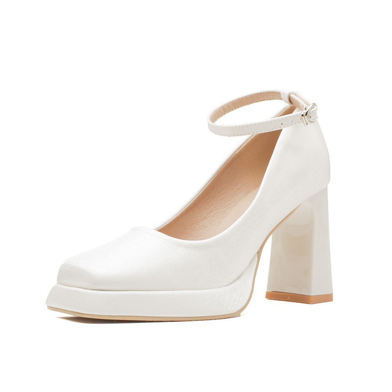 kamames kamames Waterproof Table One Word Button Spring New High Heels Mary Jane Senior Sense Silk Square Head Thick Heel Women's Shoes
