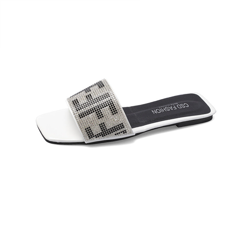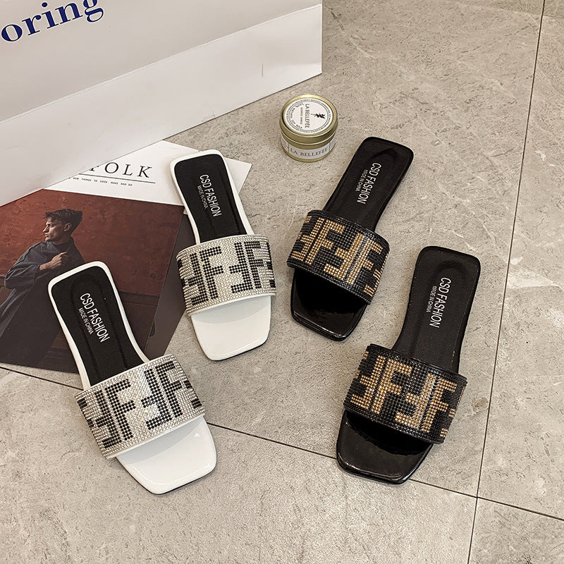kamames kamames Women's Slippers With Square Head Of Water Drill Wear Large-Size Flat-Soled Women's Shoes Of 2023 Spring And Summer. 35-42