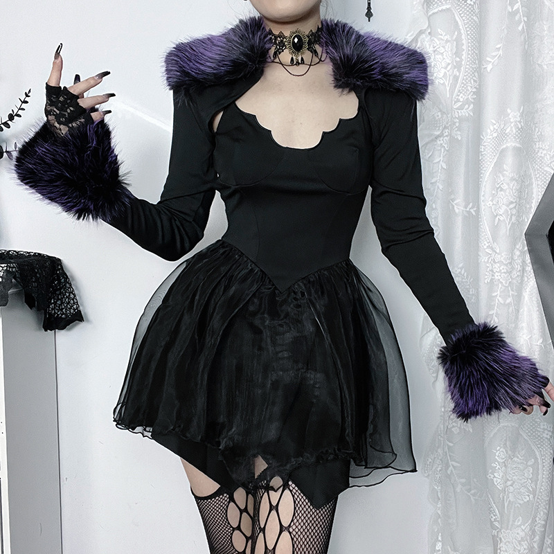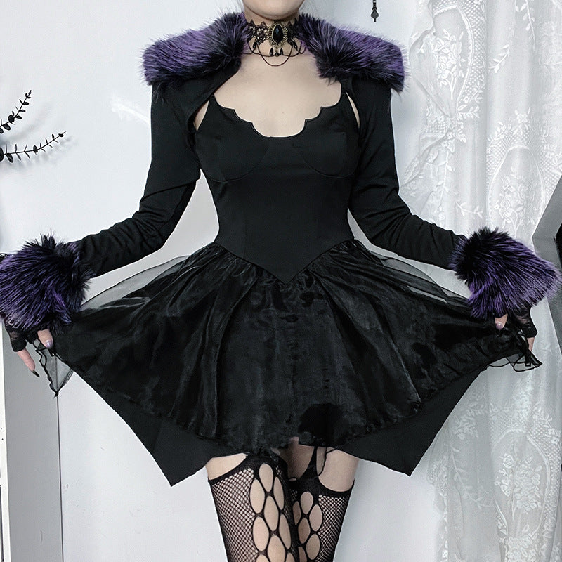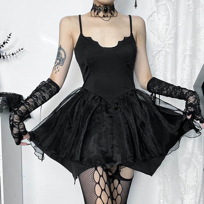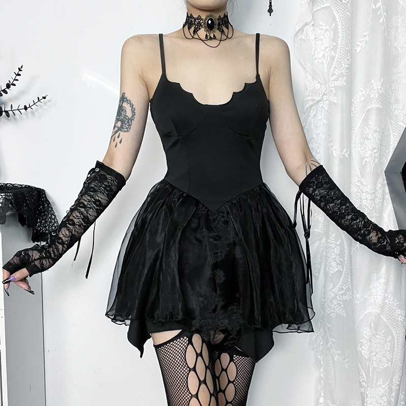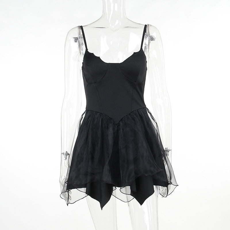kamames Sling Net Stitching Irregular Dress Women's 2024 Dark Wind New Fashion Slim Skirt