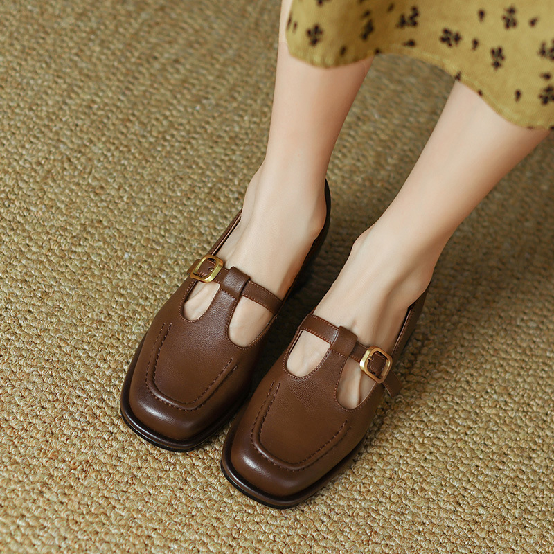 kamames Small Leather Shoes Female Designers Feel Minority Women's Shoes With Thick Heels 2024 Autumn French Vintage Brown Light Mouth Single Shoes
