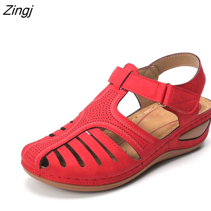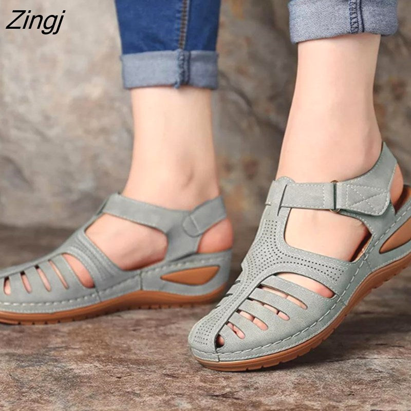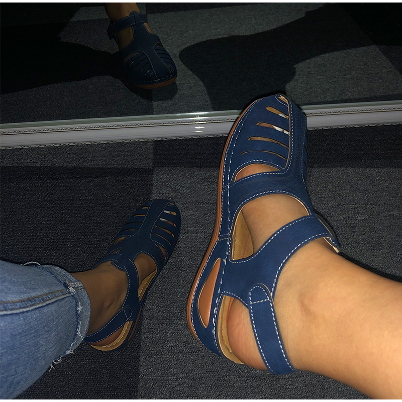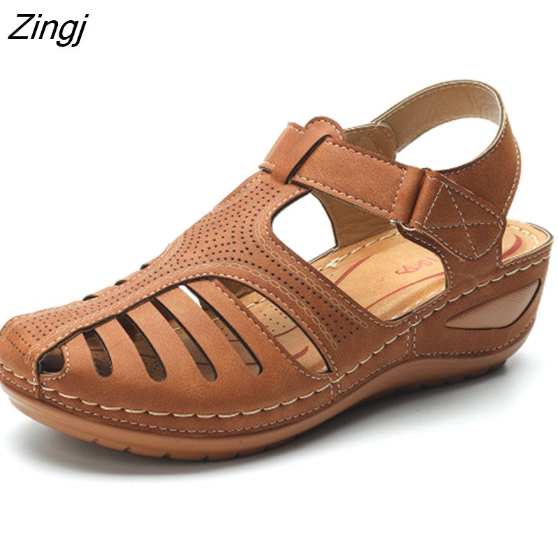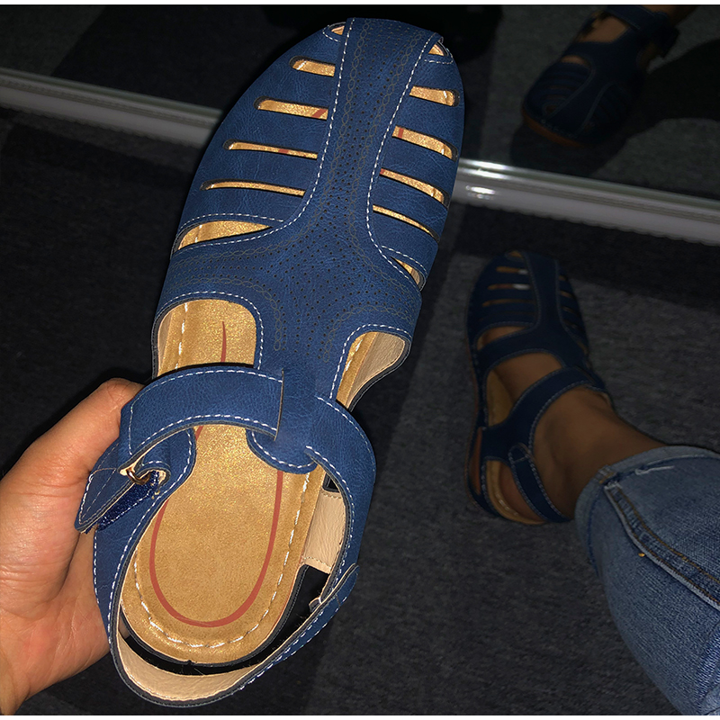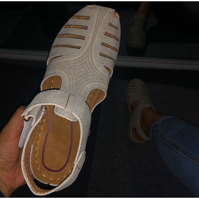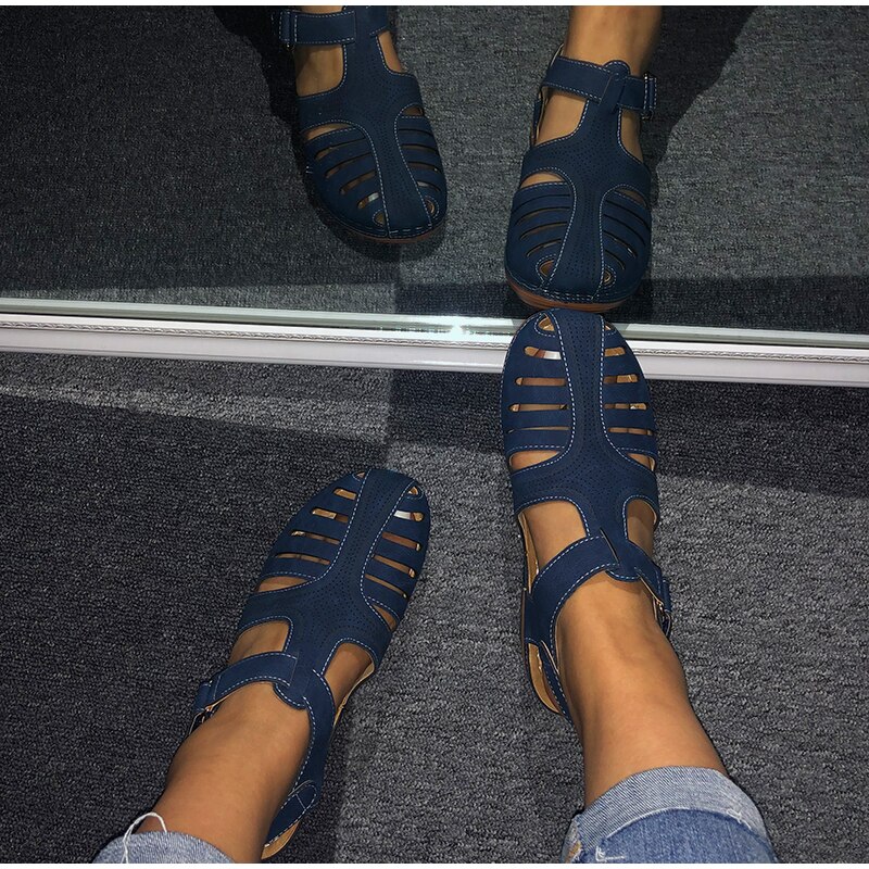 kamames Summer Leather Vintage Sandals Buckle Casual Sewing Women Shoes Female Ladies Platform Retro Sandalias Plus 35-44