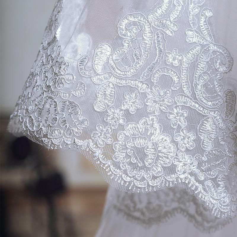 kamames White Ivory Cathedral Wedding Veil Long Lace Edge Bridal Veils Comb veli Two Layers wed veil Blusher Veil Wedding Accessories