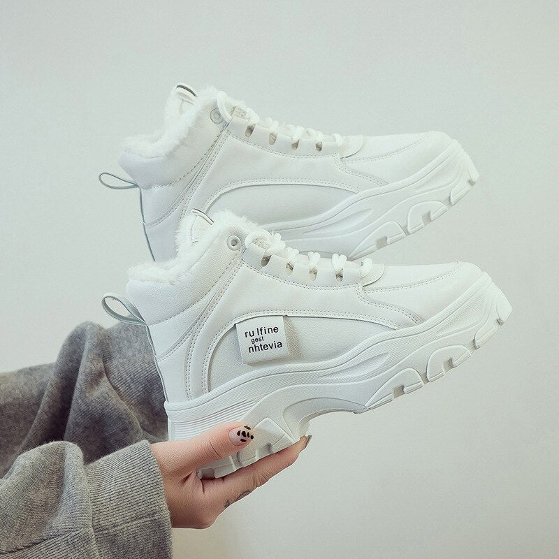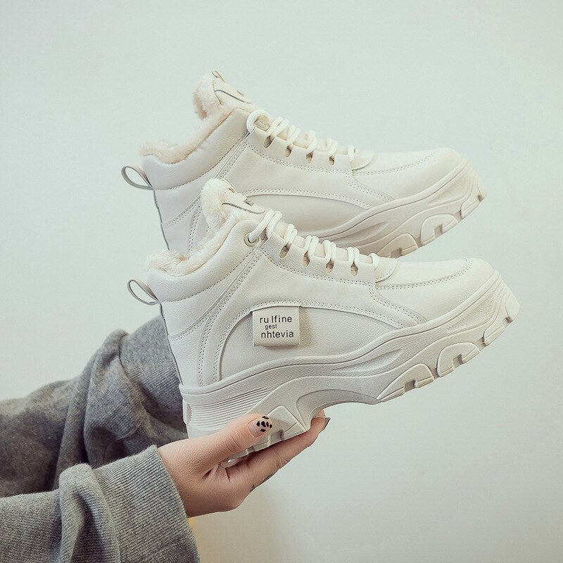 kamames Winter Women Vulcanized Shoes Warm Lace-up Mid-heel Casual Women Shoes Plus Velvet Padded Sneaker Shoes