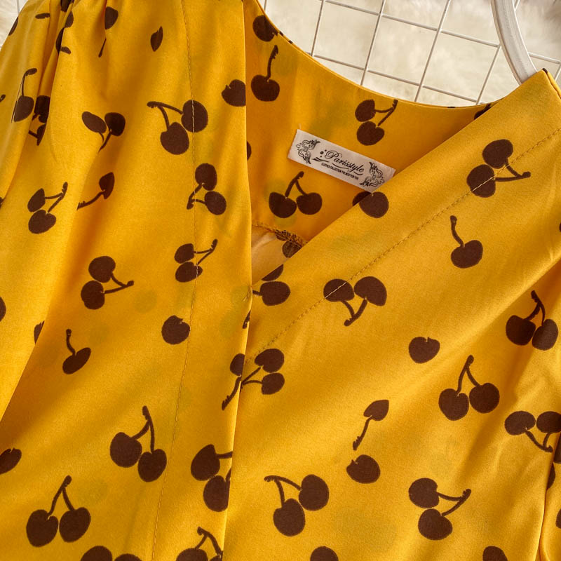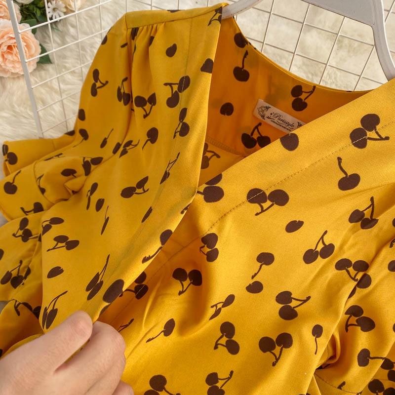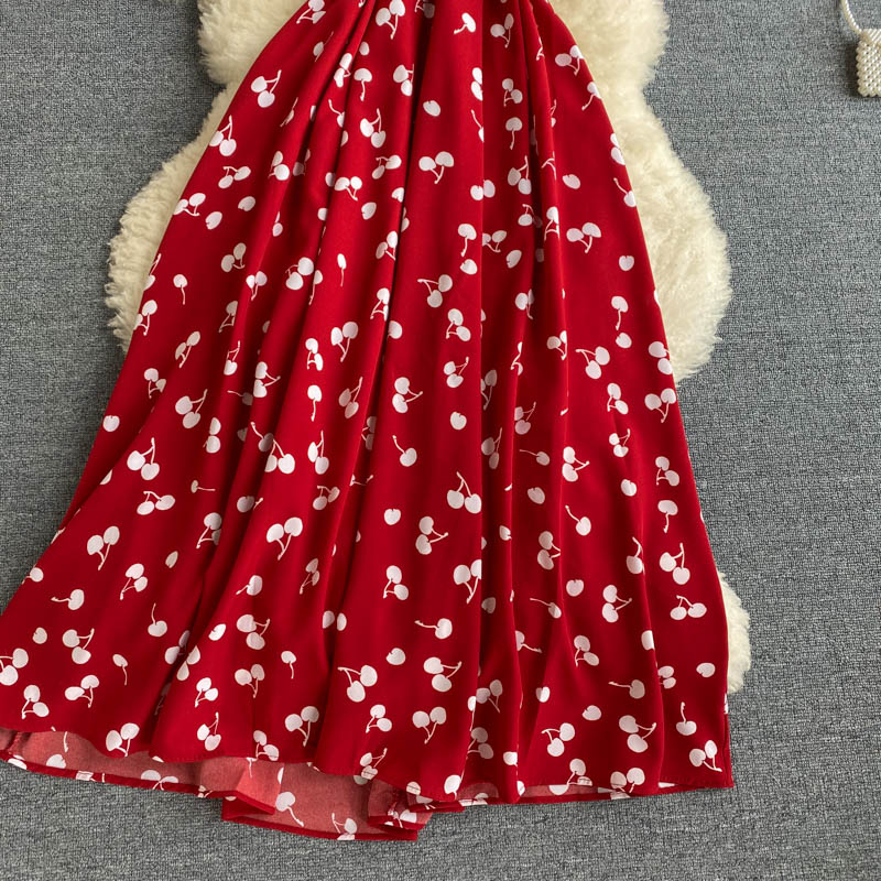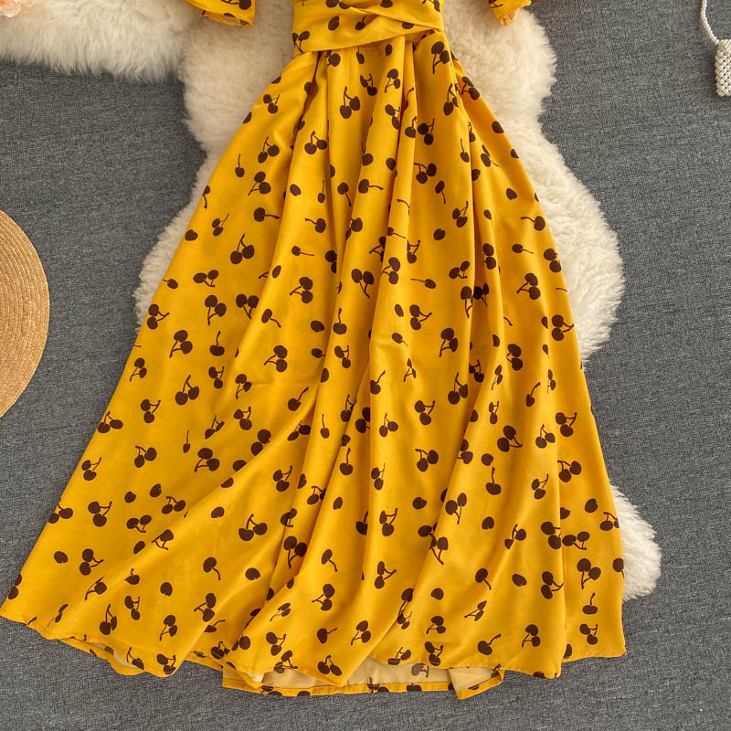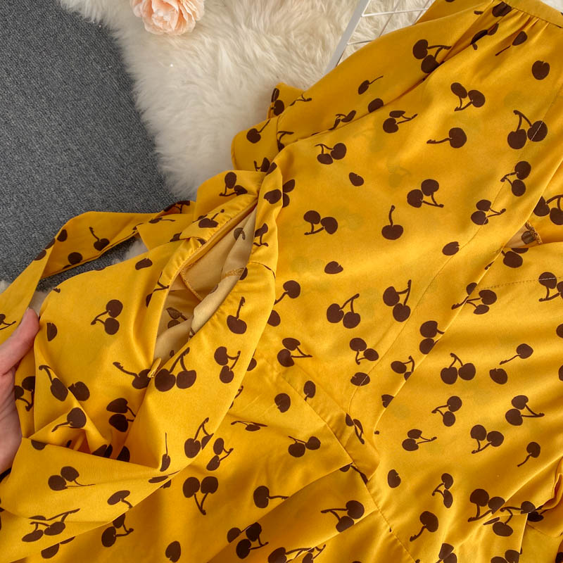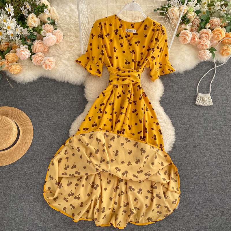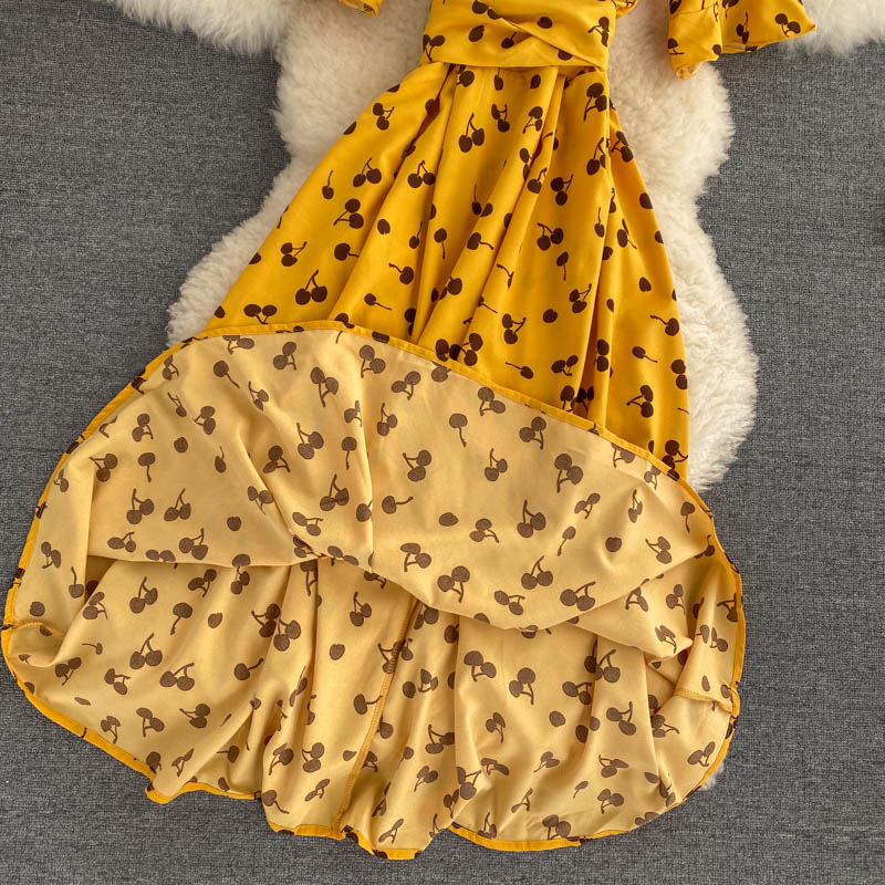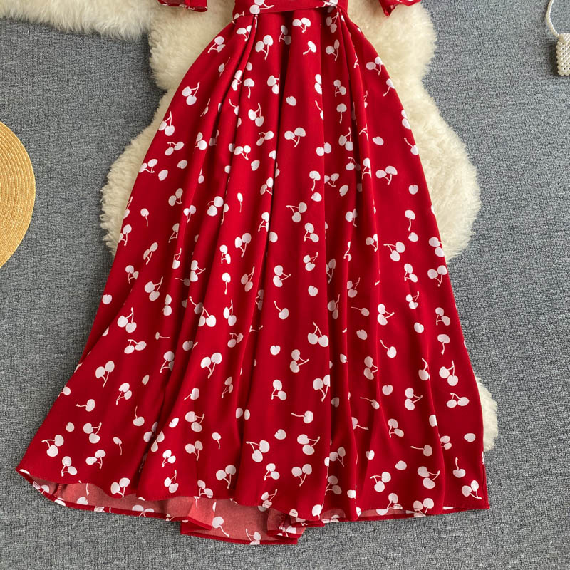 kamames Women Polka Dot Midi Dress Vintage V-Neck Short Flare Sleeve Bandage A-Line Vestidos Female Casual Robe New Fashion