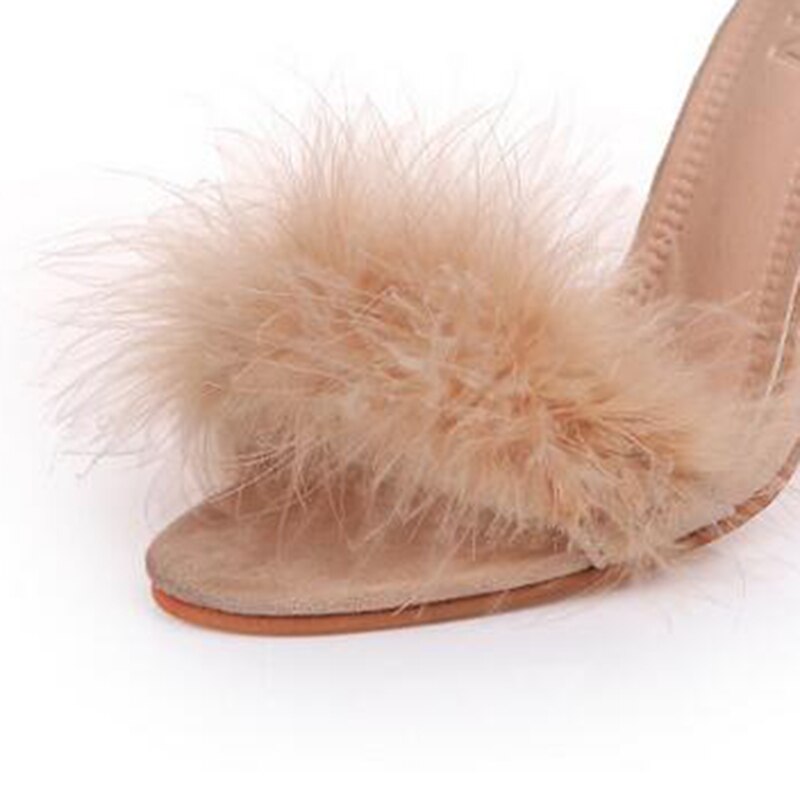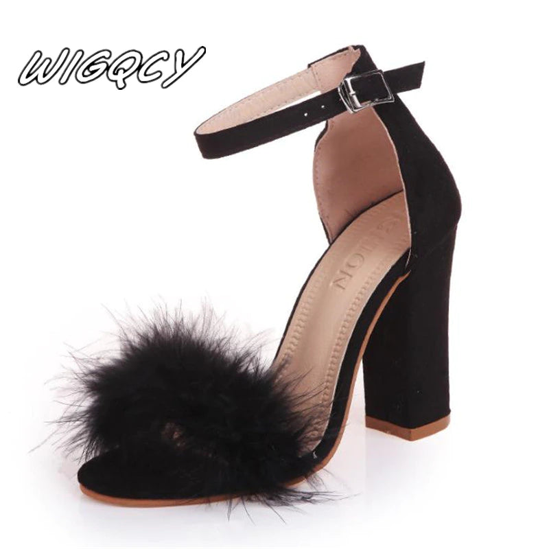 kamames Women Pumps T-stage Fur Buckle Strap Platform Open Toe Dancing High Heel Sandals Sexy Party Wedding Shoes Black mujer s01