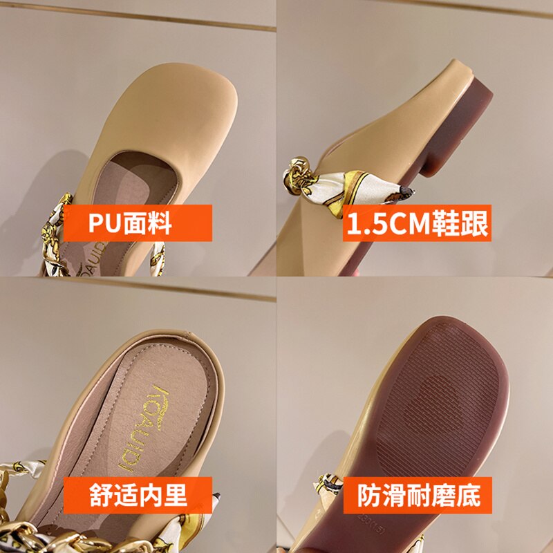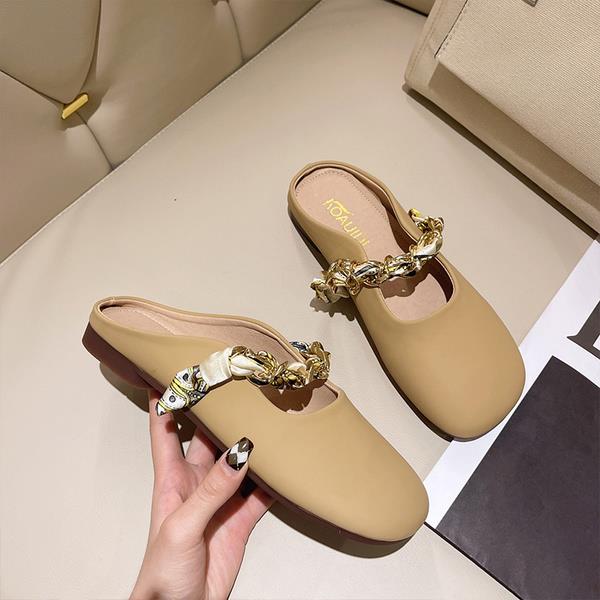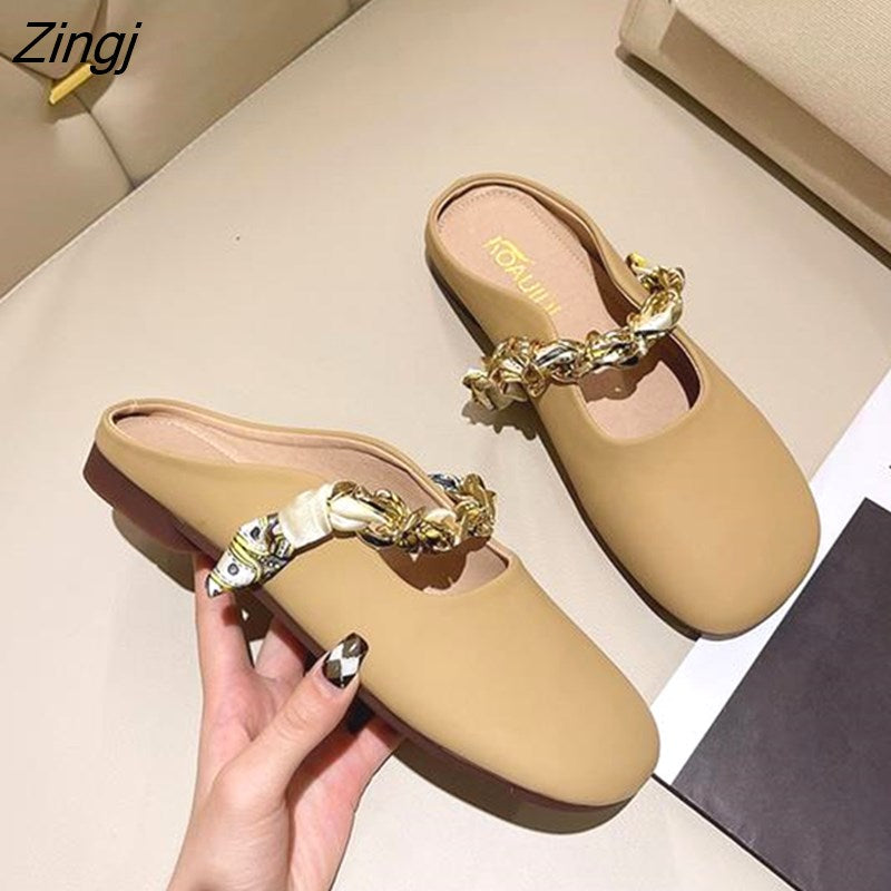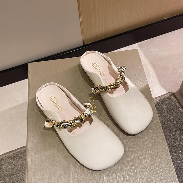 kamames Women's Shoes 2023 Women's Slippers New Slippers Solid Color Metal Decorative Bottom Heel Square Heel Ladies Slippers