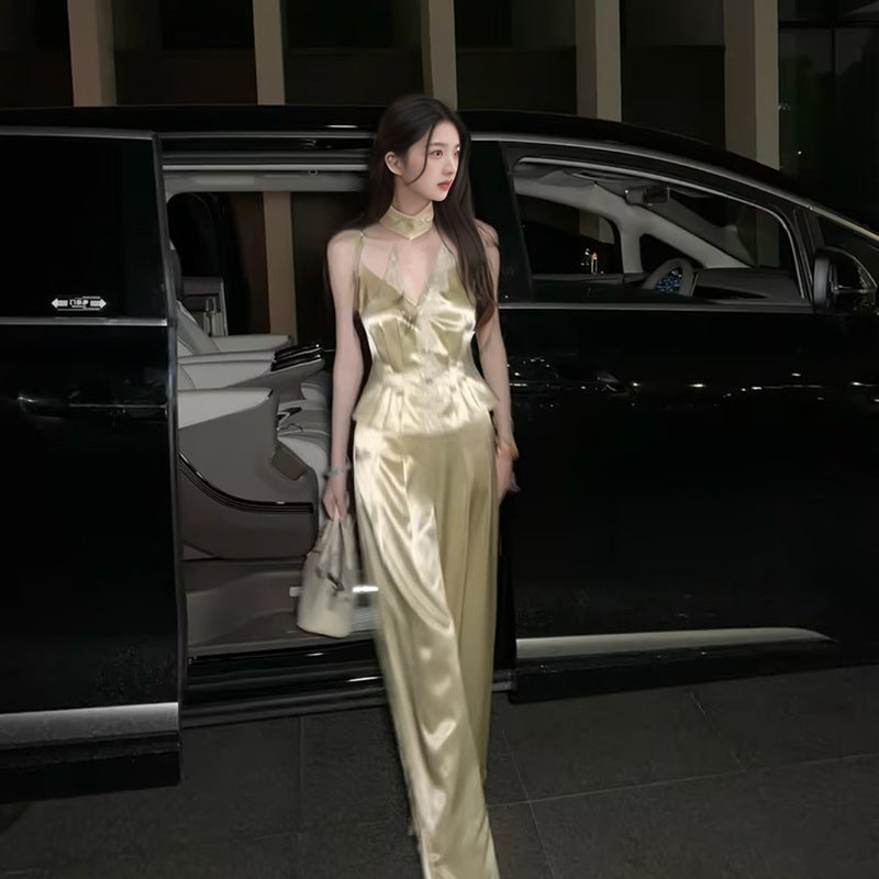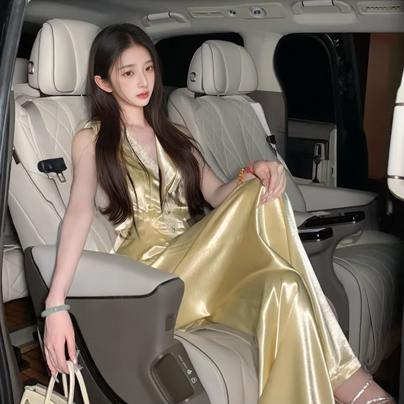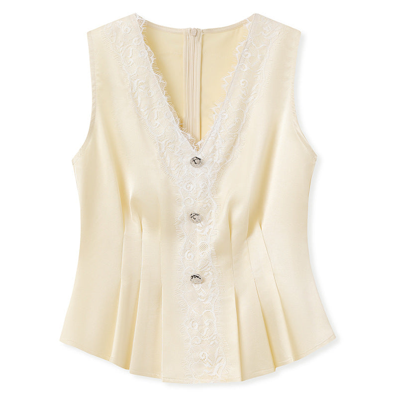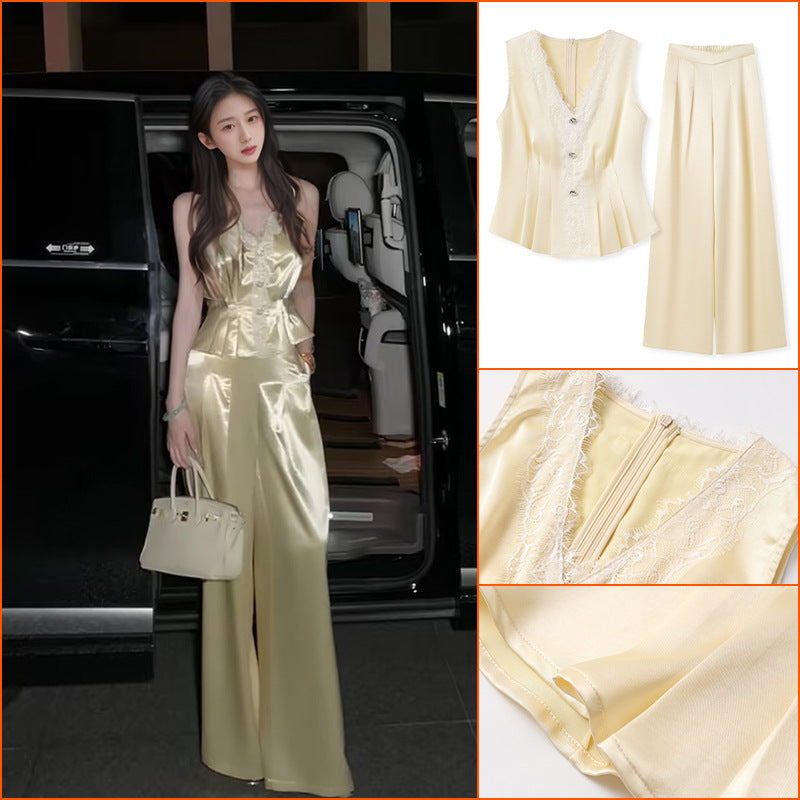light luxury sexy sleeveless lace vest high waist slim wide leg trousers summer senior two-piece set N4003