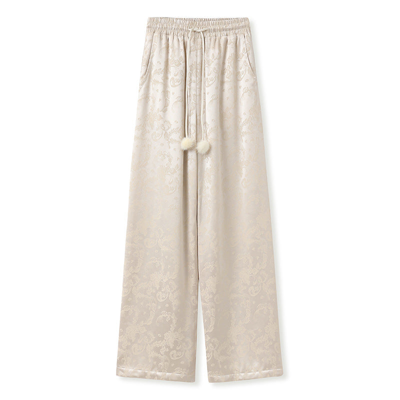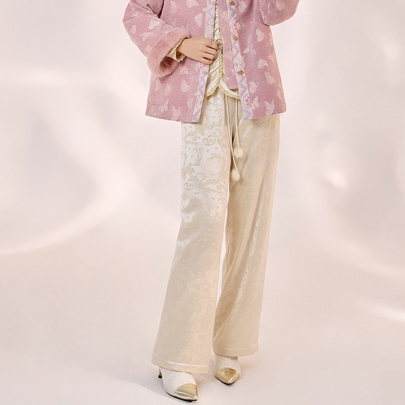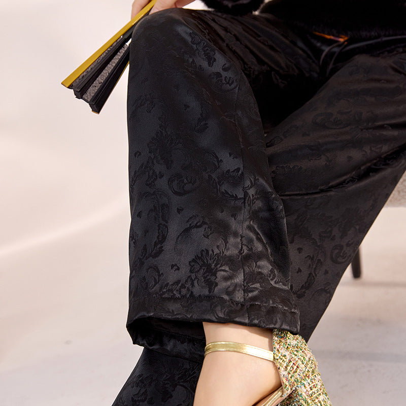 New Chinese temperament acetic acid embroidered straight-leg pants winter new national style versatile design cotton trousers MY074