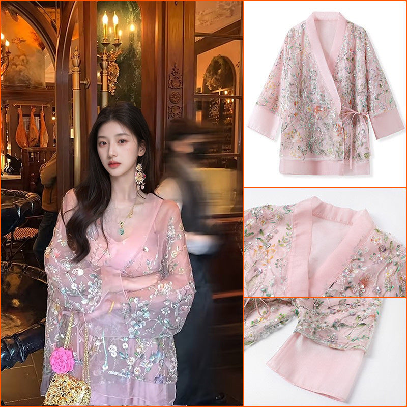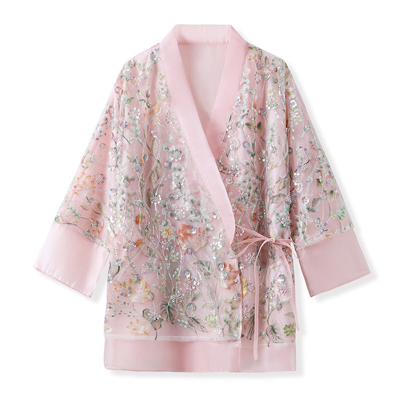 New new Chinese style bead embroidery heavy industry sequins thin coat light luxury celebrity temperament top M4105