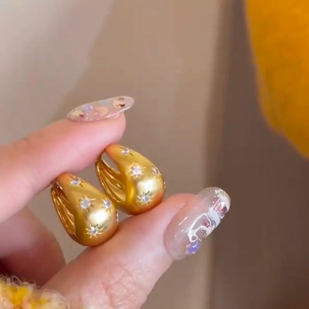 Retro luxury gold brushed brick ear buckle women's double-sided zircon snowflake earrings simple and thin earrings