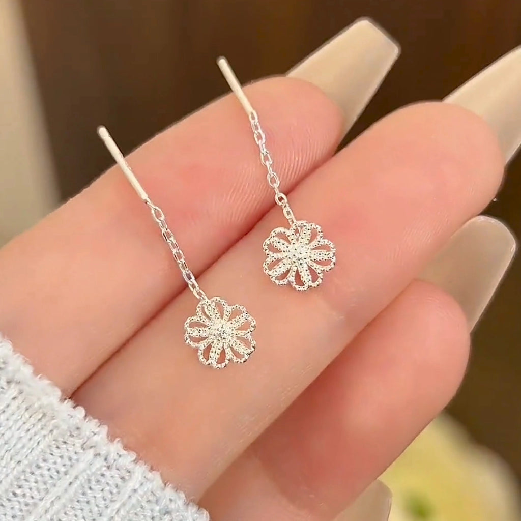 Spring and summer new hollow flower earrings 925 silver needle temperament small silver petal short earrings