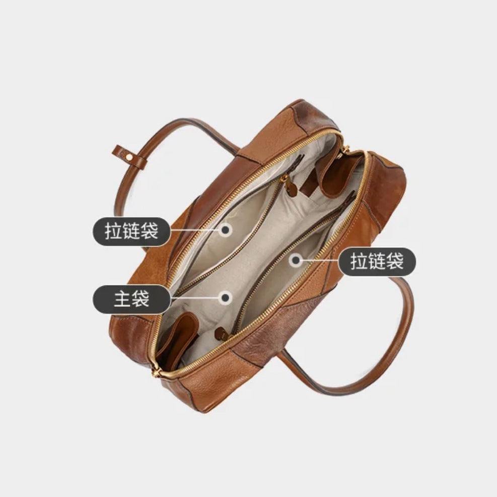 The first layer of cowhide splicing bowling bag New new miu home retro leather women's bag large capacity Boston bag