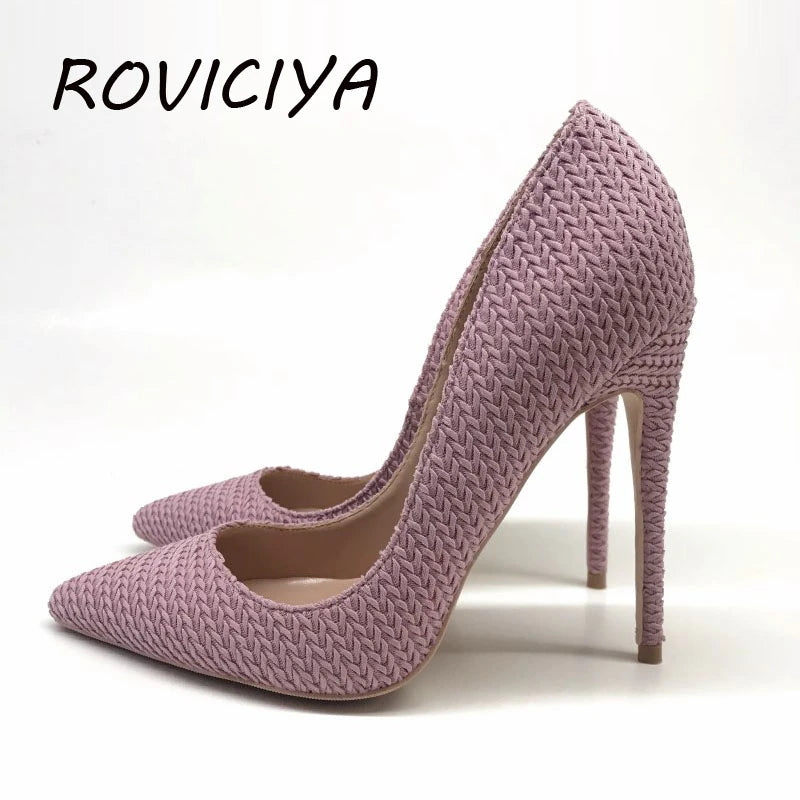 kamames 12cm high heels sexy knit fashion pointer toe sexy shallow women wedding party evening shoes BM014 ROVICIYA