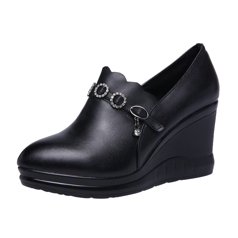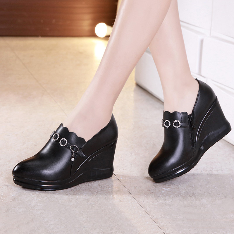 kamames Autumn And Winter Slope High Heel Waterproof Platform Deep Tip Single Shoes Women's Plush Black Large Size 40-43 Women's Shoes
