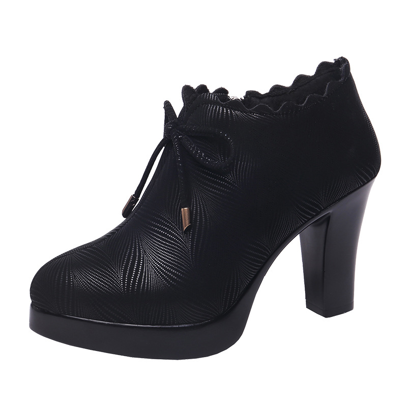 kamames Deep-Mouth Single Shoes Autumn Thick-Heeled Waterproof Platform Black Model Catwalk High-Heeled Shoes Women's Professional Work Shoes