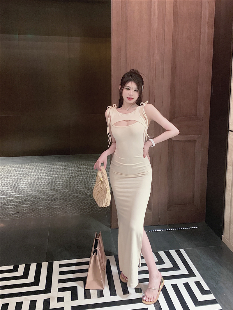Zingj high slit elastic knitted dress female summer sweet desire self-cultivation