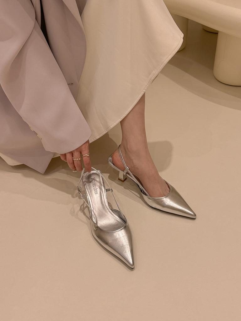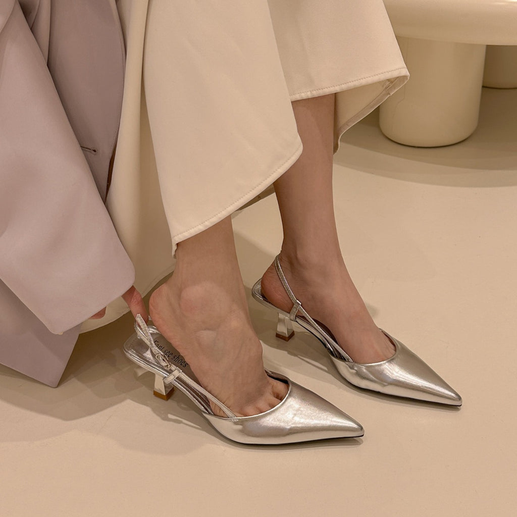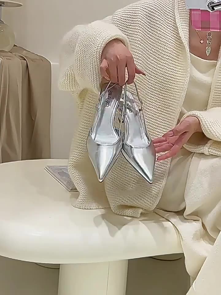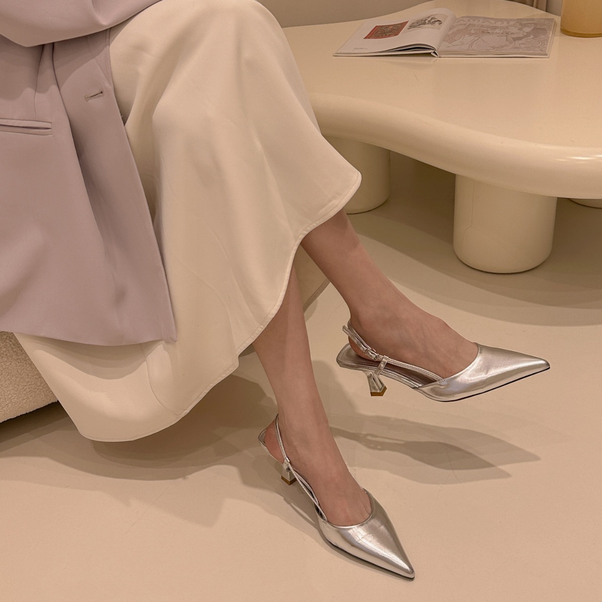 kamames Into The Galaxy Silver Pointed High-Heeled Sandals Women's 2023 Stilettos Half-Wrapped After The Empty Single Shoes