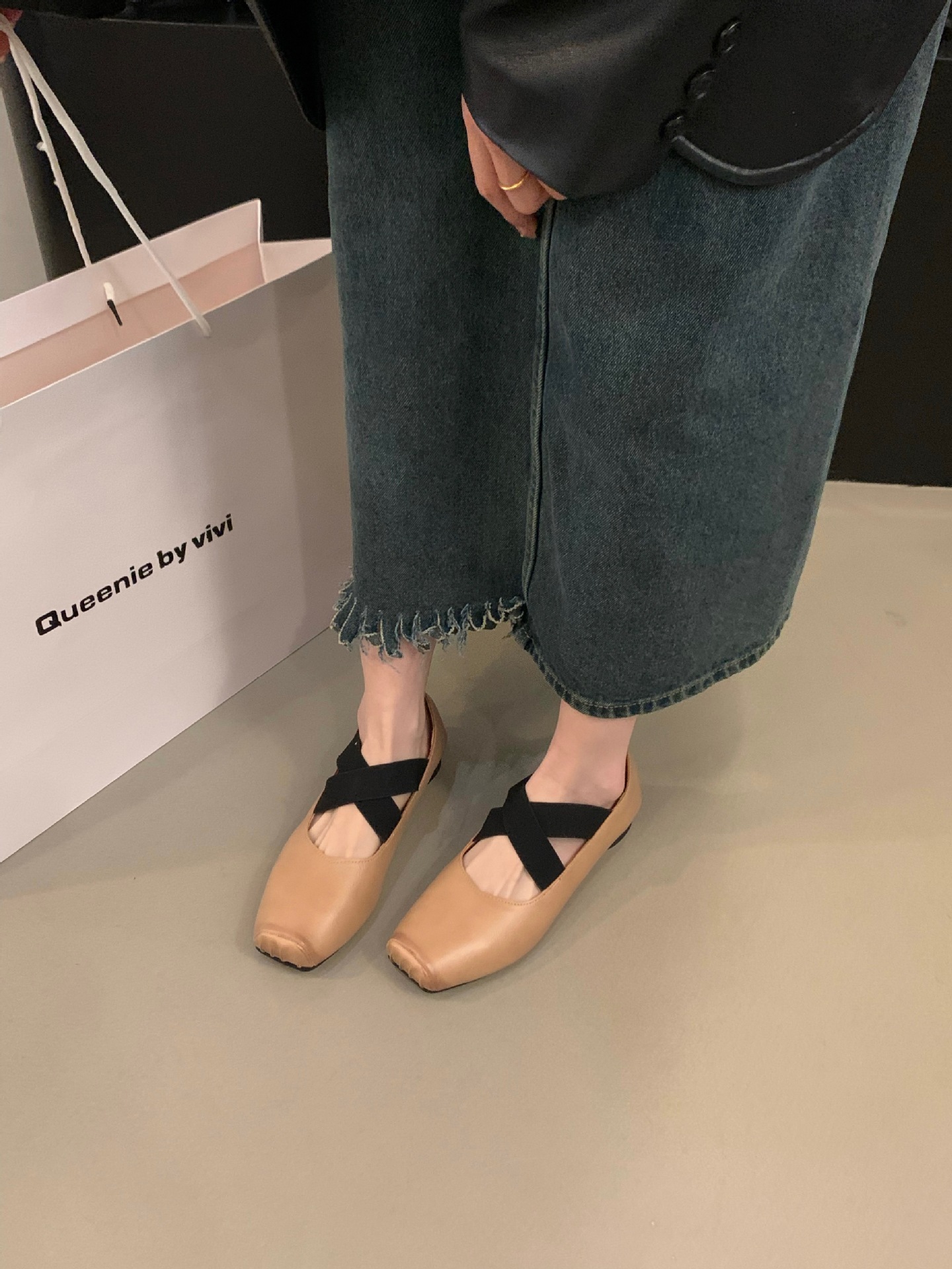 kamames Low-Heeled Square-Headed Ballet Shoes 2024 New Summer Vintage Mary Jane Spring And Autumn Flat Soles