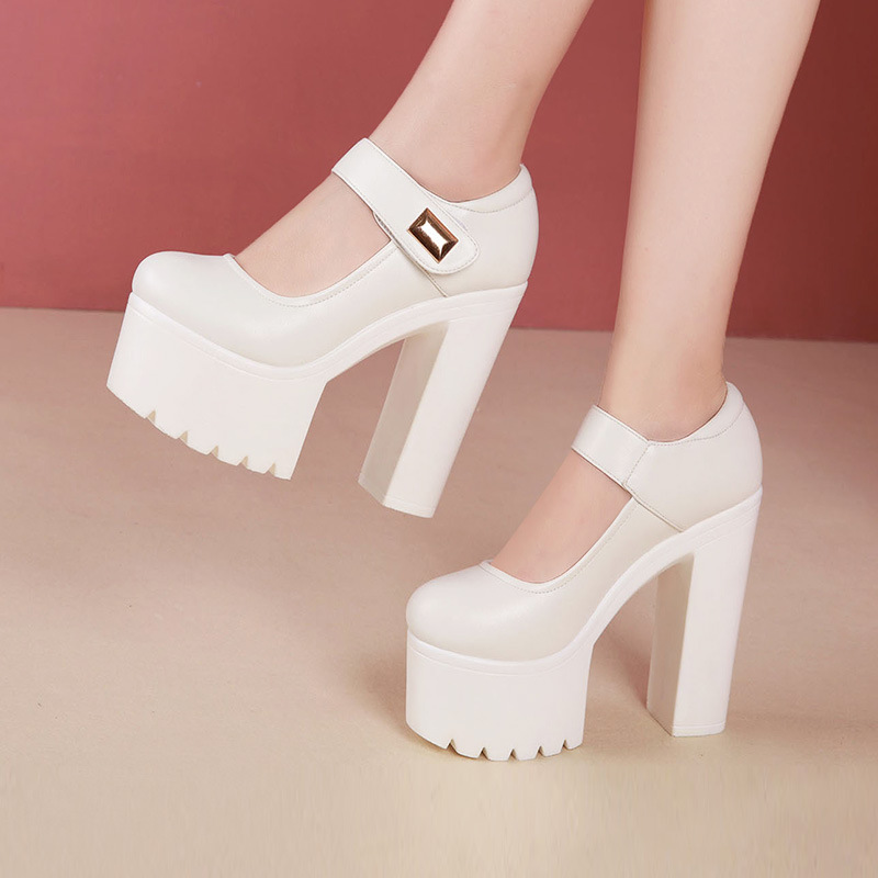 kamames Model Training Special High-Heeled Women Large-Size Thick-Heeled High-Heel Velcro Cheongsam Catwalk Show Single-Shoe Girl