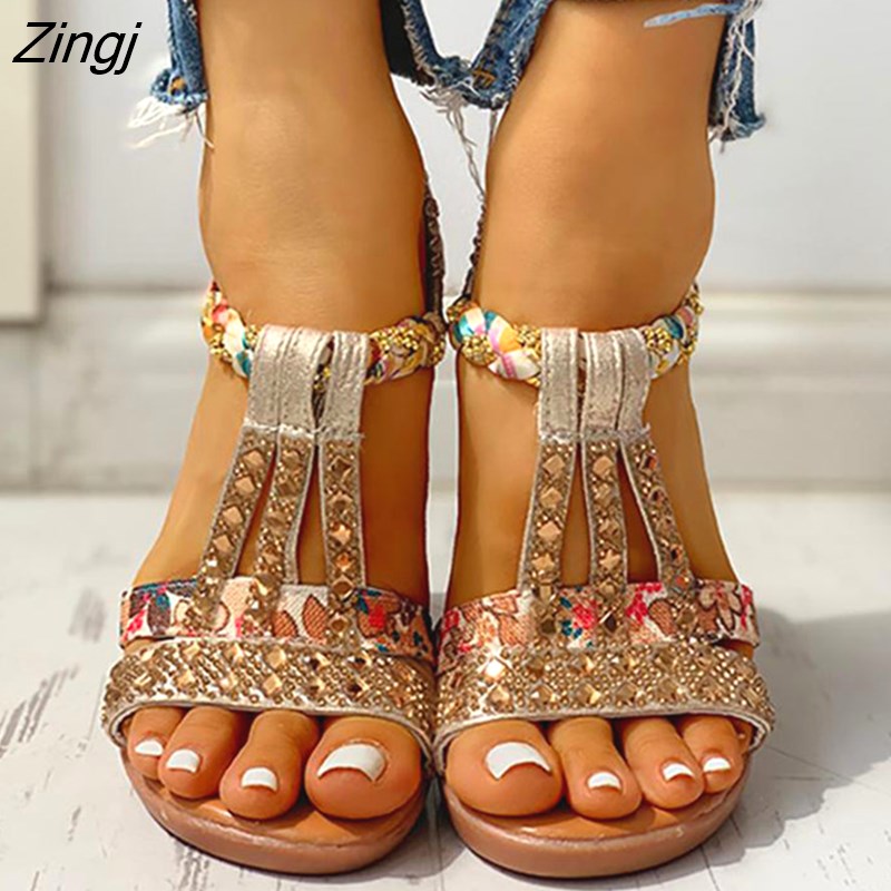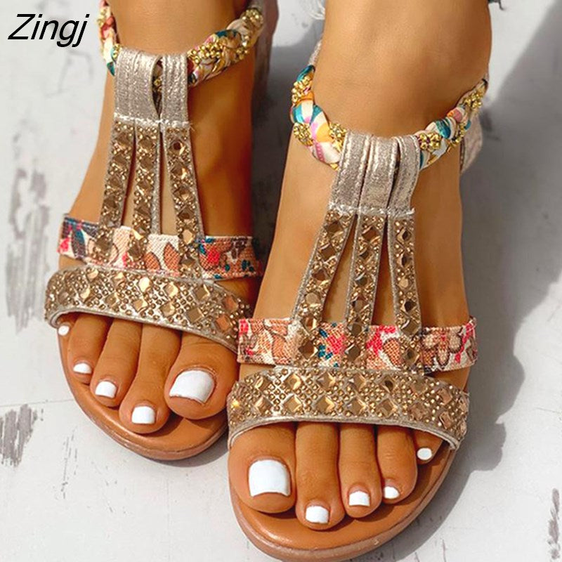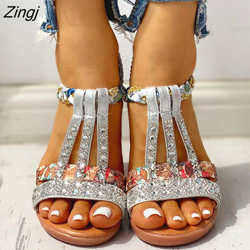 kamames New Gladiator Wedge Heels Elastic Band Crystals Summer Women Shoes Woman Sandals Leisure Beach Sandals Large Size 35-43