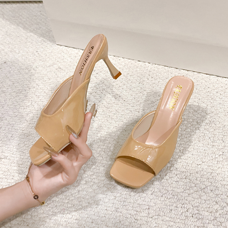 kamames New High-Heeled Sandals Square Head Korean Version Of Fashion High-Heeled Shoes Large-Size Fashion Slippers