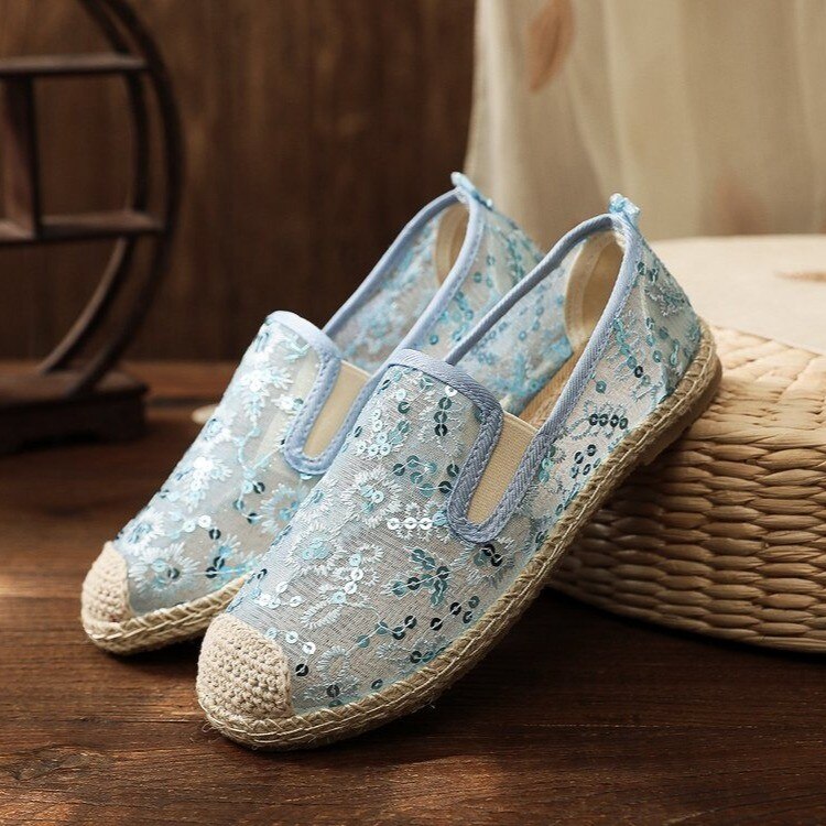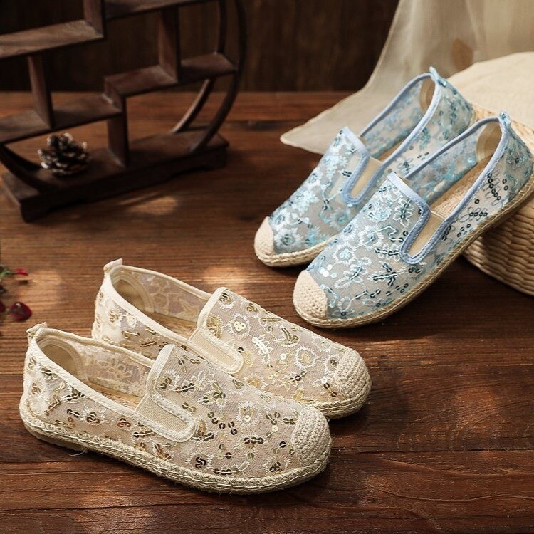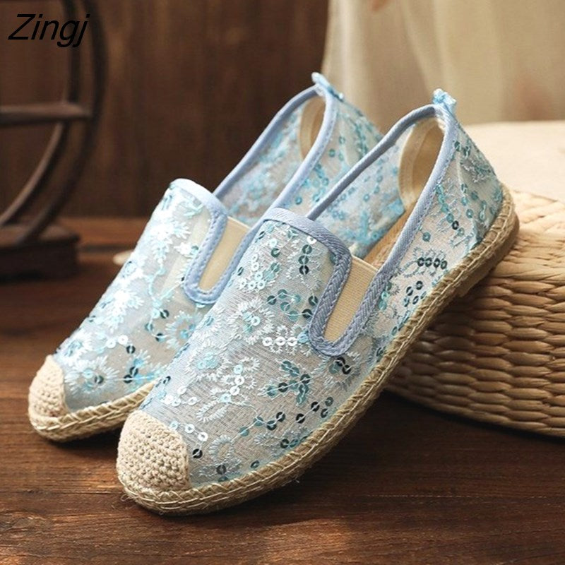 kamames New Lace Mesh Crystal Butterfly Loafers Women Luxury Pearl Moccasins Ladies Summer Walking Shoes Fashion Ballet Flats