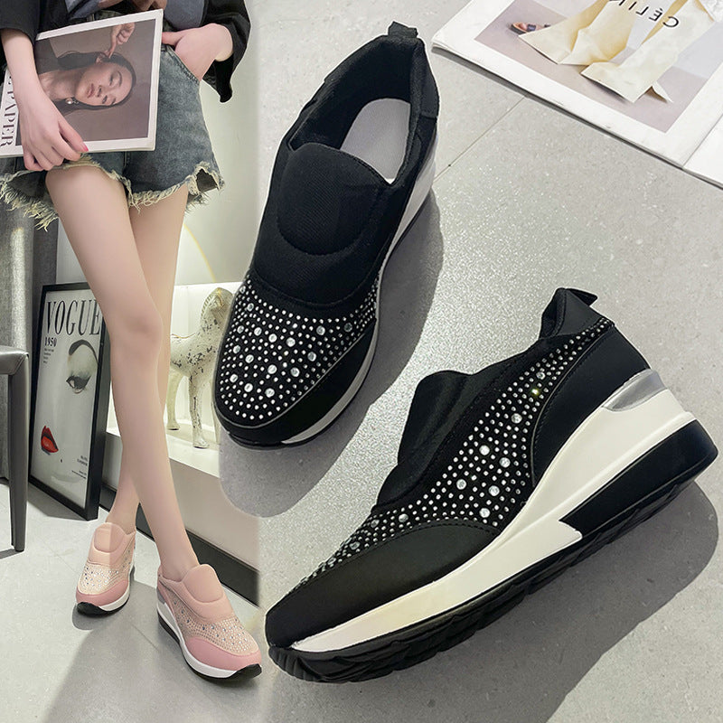 kamames New Large Size Women's Shoes With Thick Glitter, Solid Color Cover, Breathable Feet, Light And High Inside.