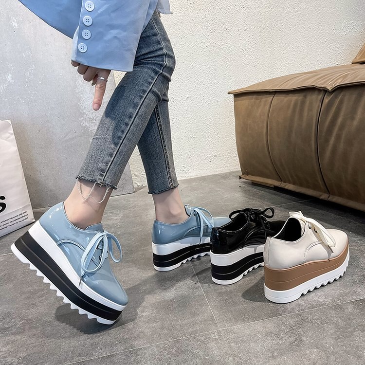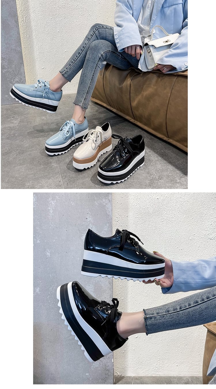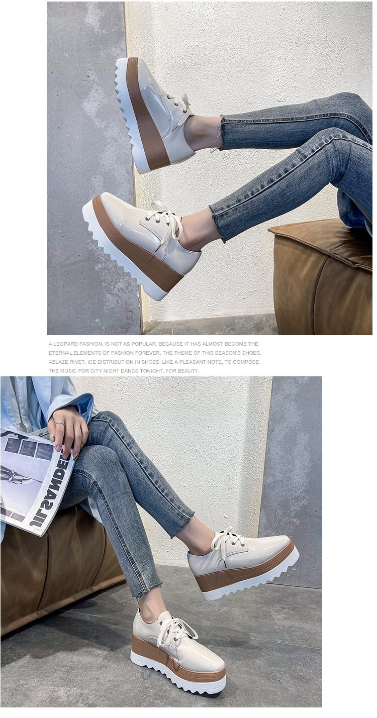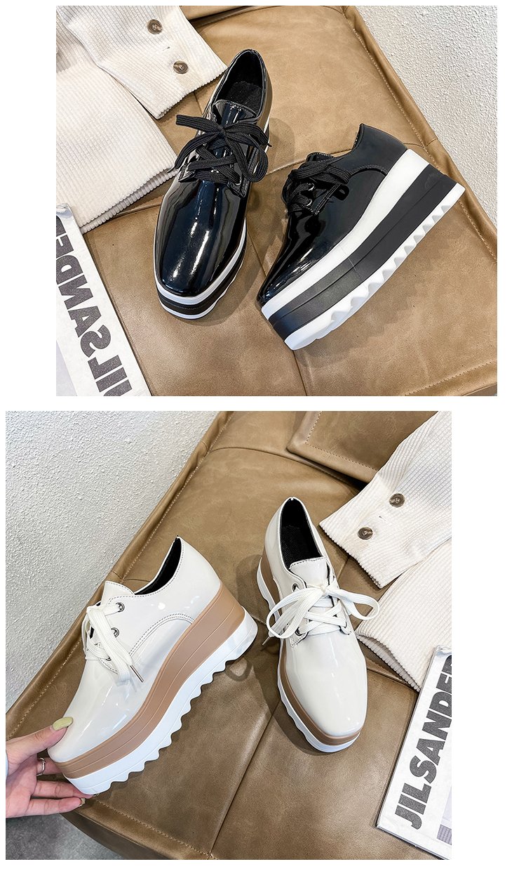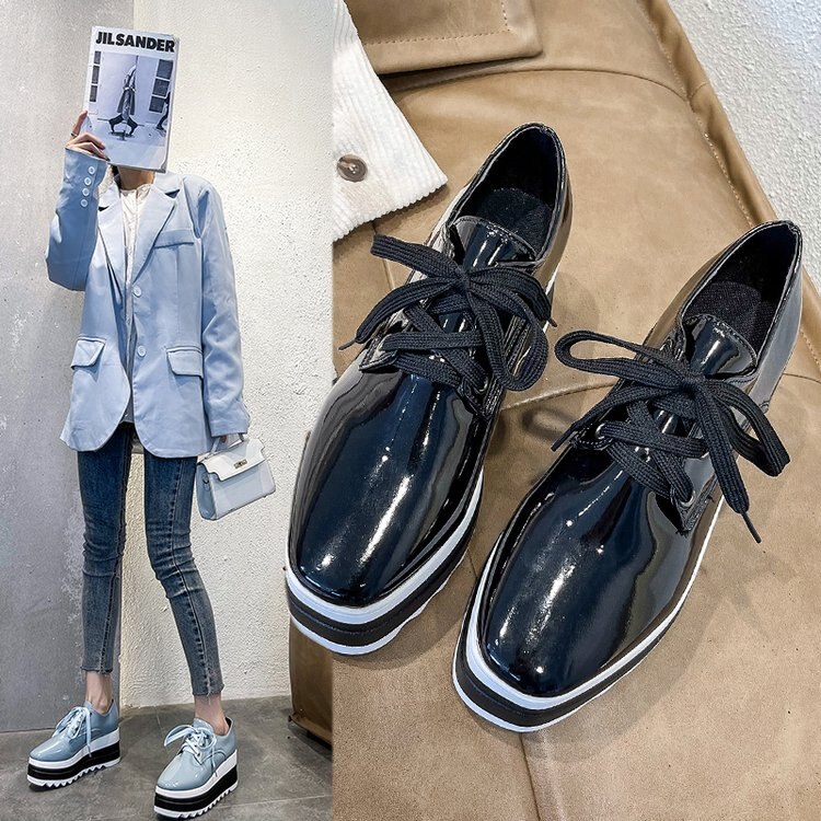kamames new Spring Casual Solid Flat Women Shoes Patent Leather Lace-Up Loafers Flat Platforms British Style Ladies Oxfords35-42