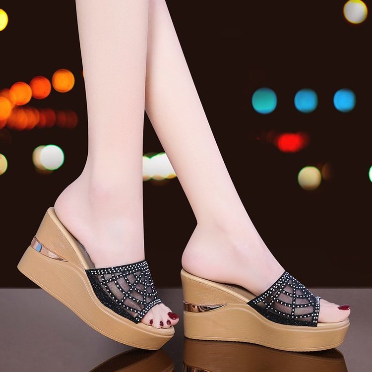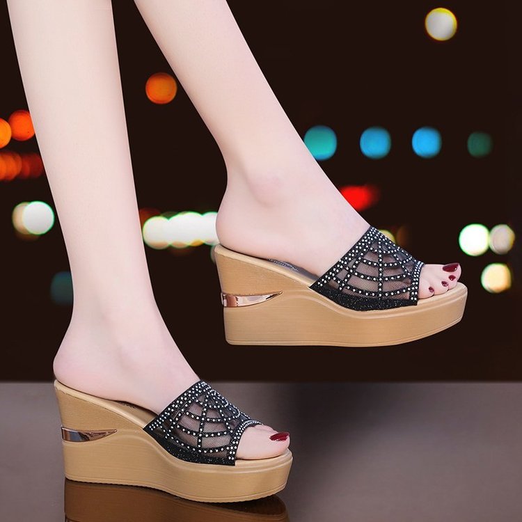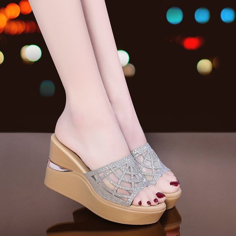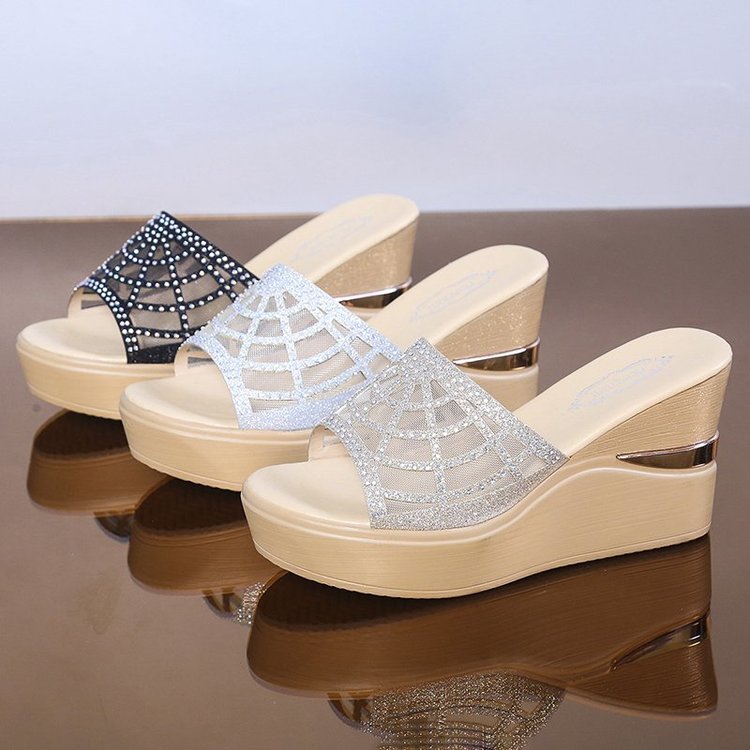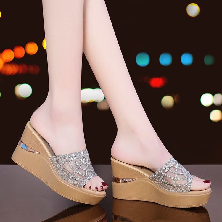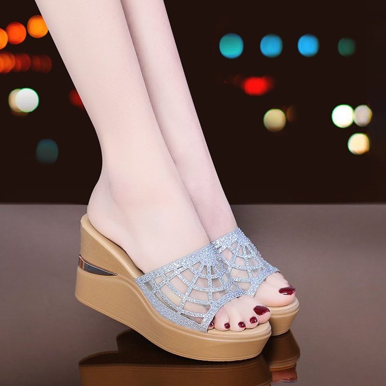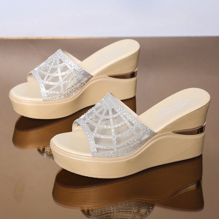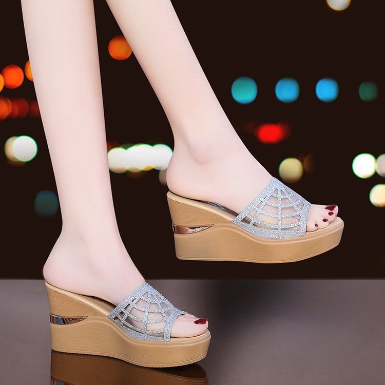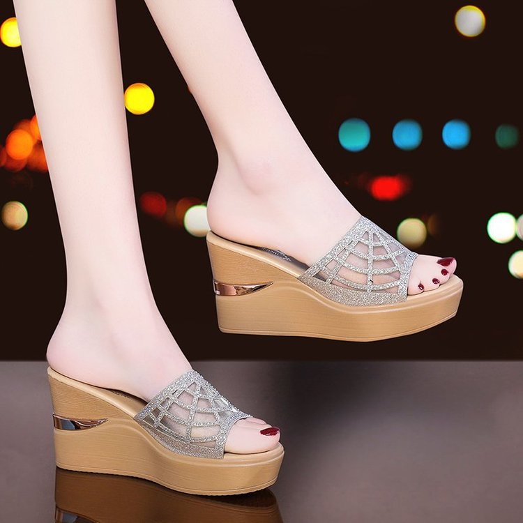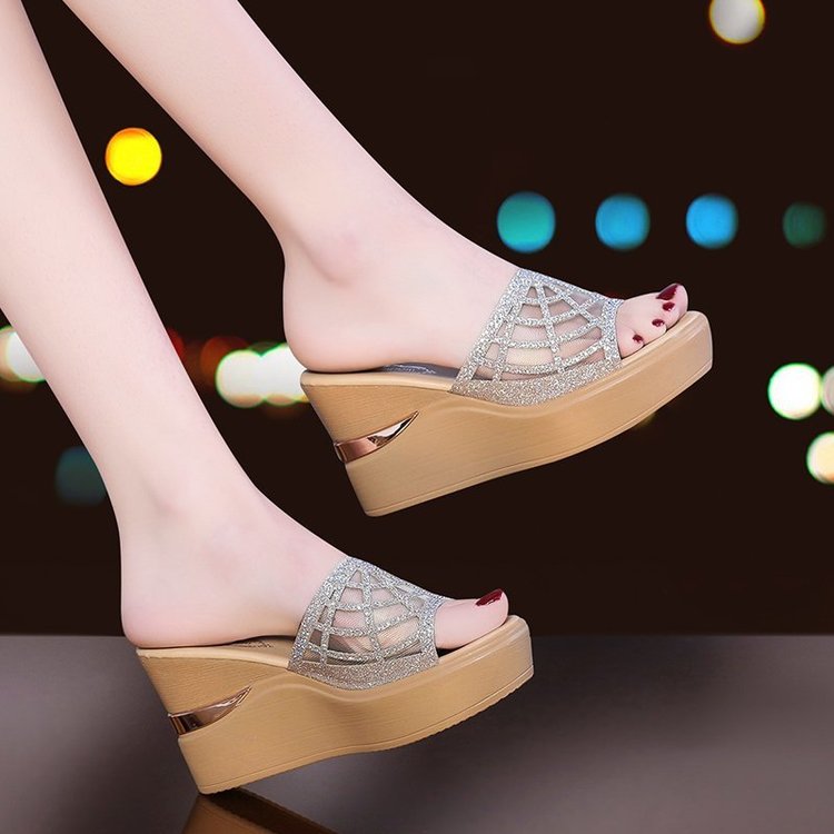 kamames New Summer Sandals Women Wedge Heels Platform Fashion Open Toe Sequin High Heels Beach Shoes Slippers Sandals Slippers