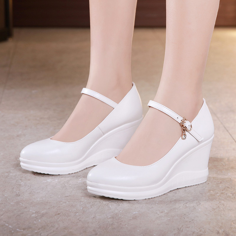 kamames Shoe Women's Slope Heel 2023 Spring New Style Waterproof Platform Pointed Work Shoes High Heel Slope Heel Cheongsam Catwalk Shoes