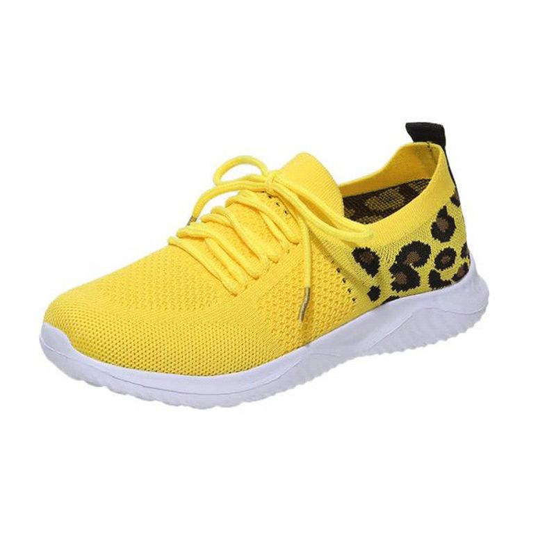 kamames Size Women's Leisure Sports Shoes 2023 New Leopard Print Round Head Ties With Flat Soles And Comfortable Mesh Surface Women's Shoes