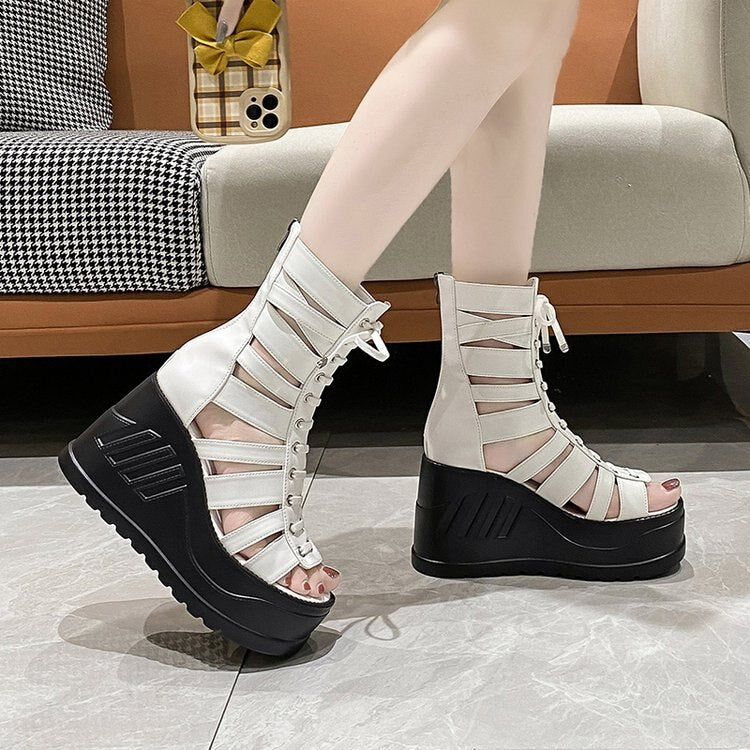 kamames Summer New Fashion Sandals Women's Shoes Zipper Open Toe Wedge Polyurethane Sandals PU ladies shoes and sandals pumps