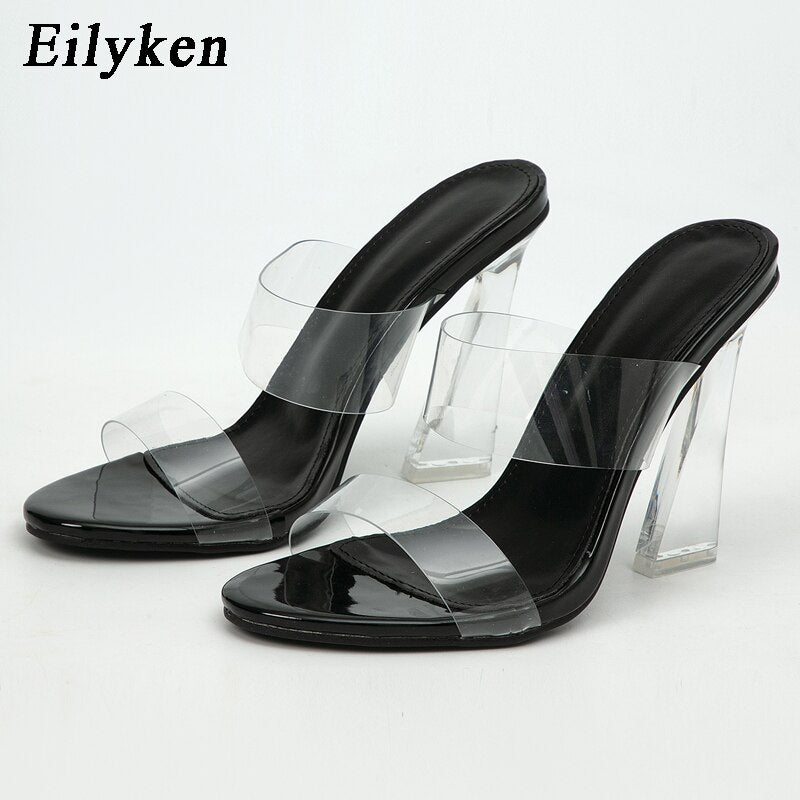kamames Super Sexy Peep Toe PVC Transparent Hollow Women Summer Slippers Design Plexiglass Hoof Clear Heel Slides Shoes