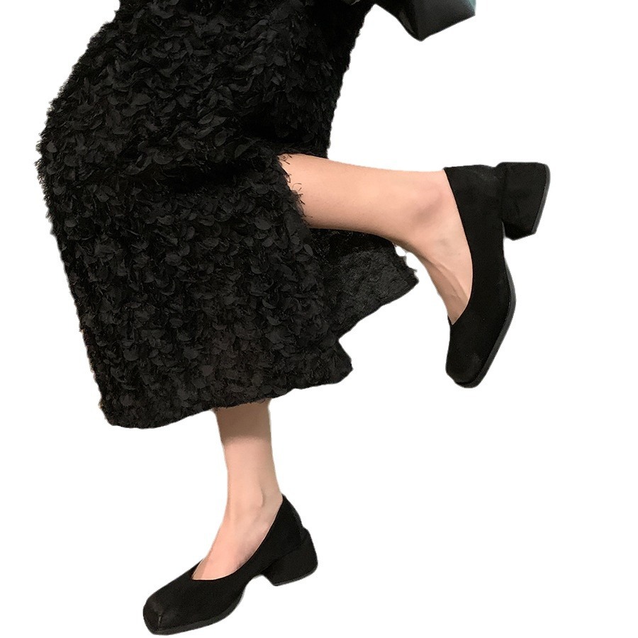 kamames Thick Heel Black Square Head Temperament Single Women's Shoes 2024 New Retro Shallow Mouth Evening Style High Heels