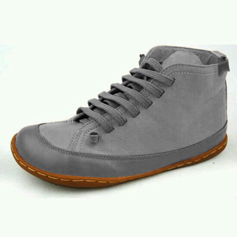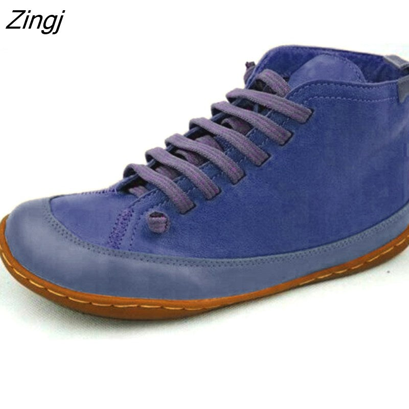 kamames Women Leather Ankle Boots 2023 Autumn Winter Vintage Woman Waterproof Flats Women's Casual Ladies Lace Up Female Shoes Plus Size