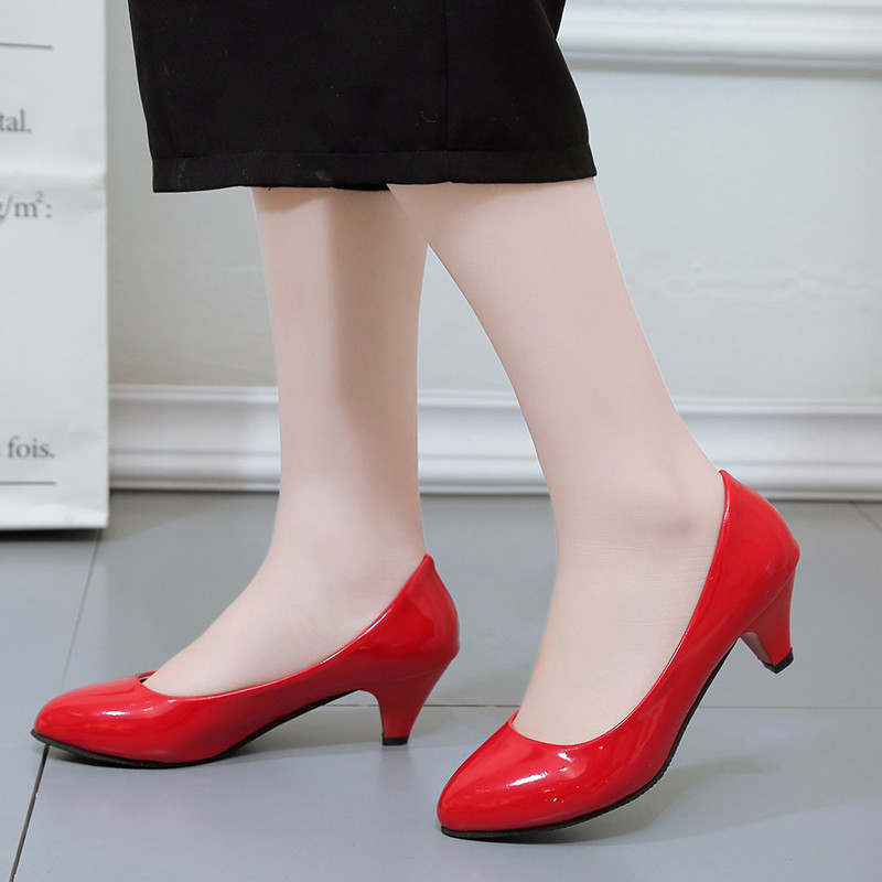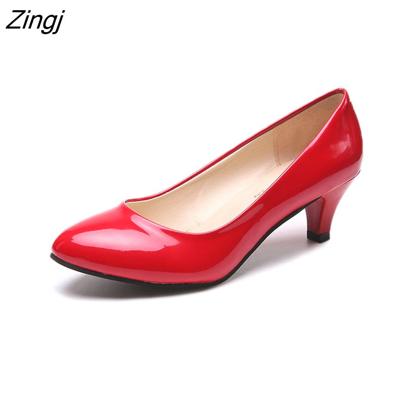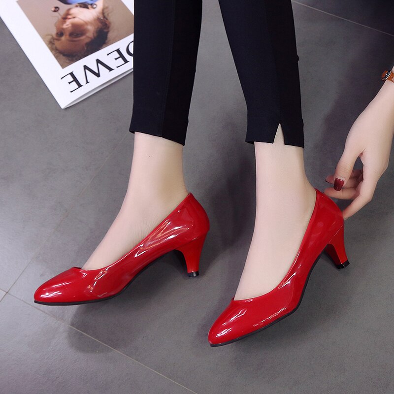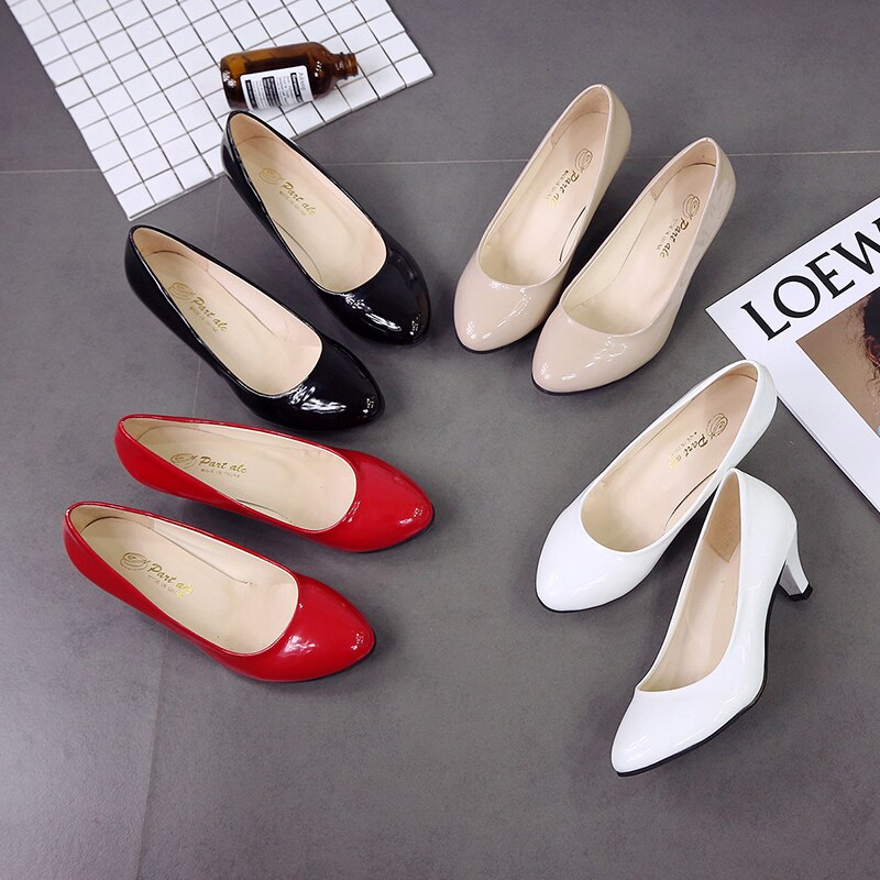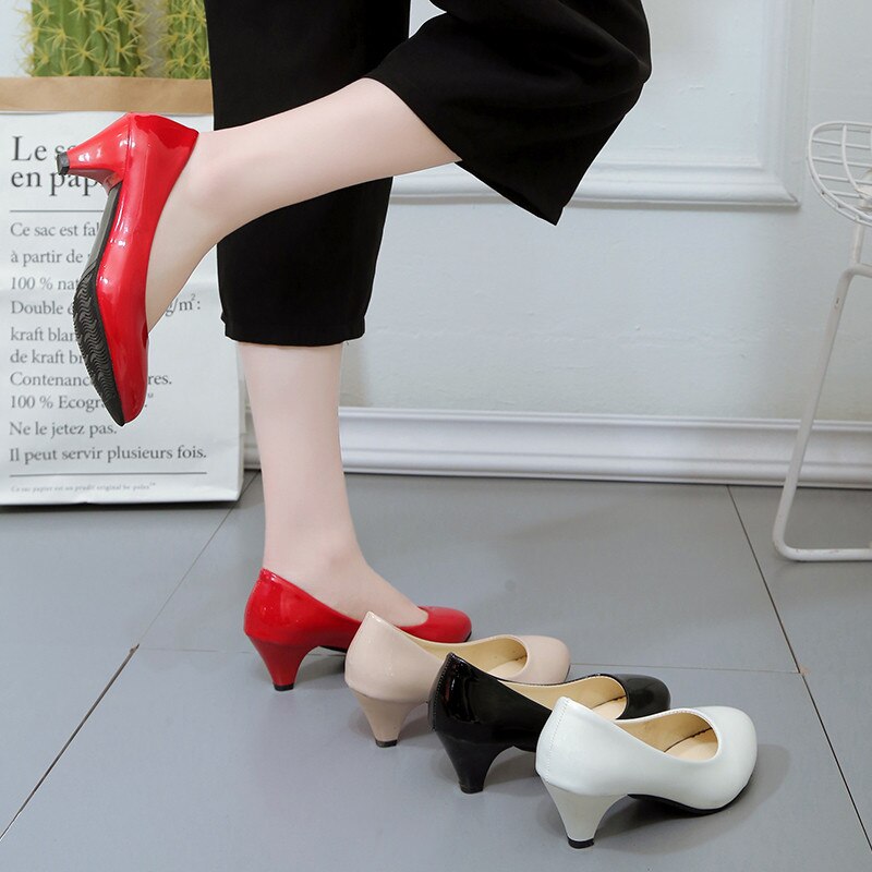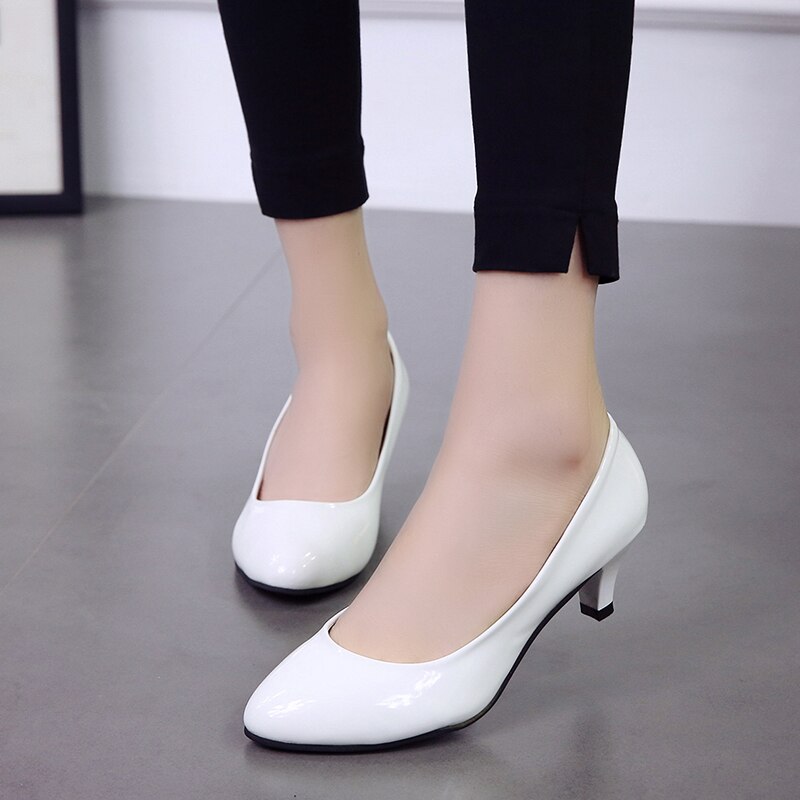 kamames Women's Leather Med Heels New High Quality Shoes Classic Black&White Pumps for Office Ladies White High Heels Red Sexy Heels