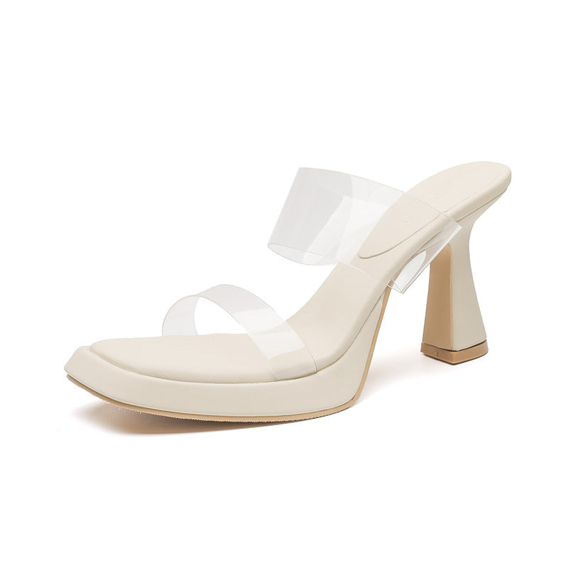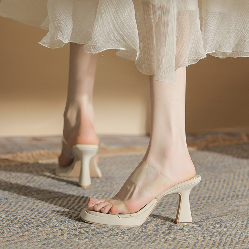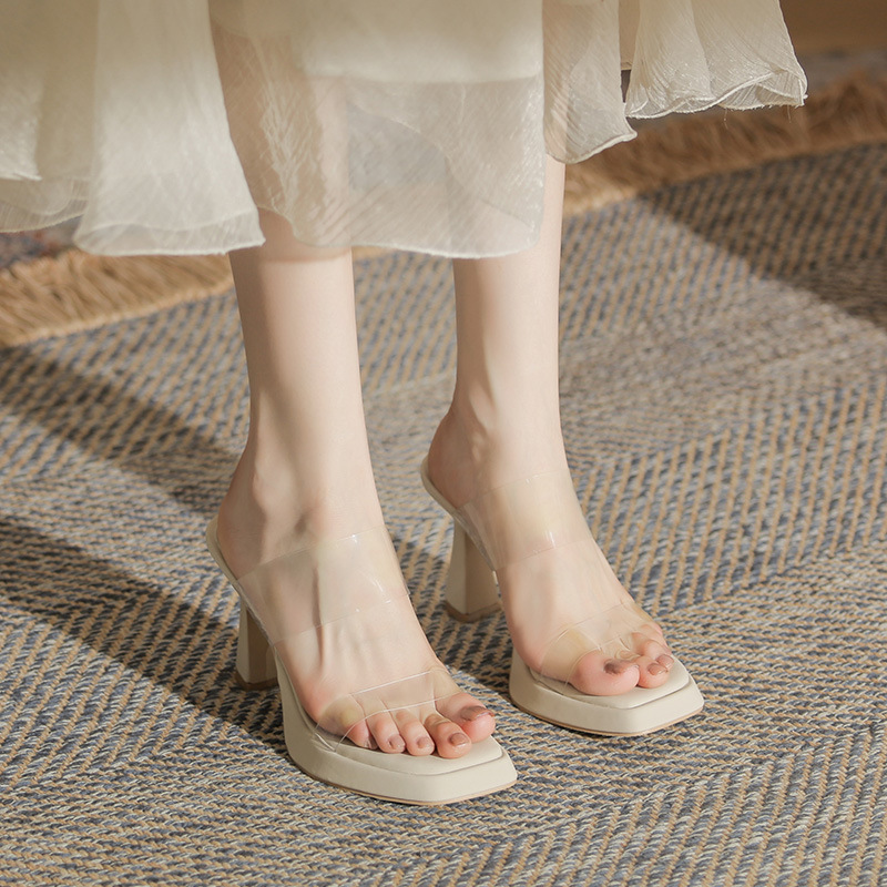 kamames kamames Open-Toe High-Heeled Shoes Single Shoes French Thick Heel Minority Empty Sandals Transparent Outside Wearing Beautiful High Heels Women