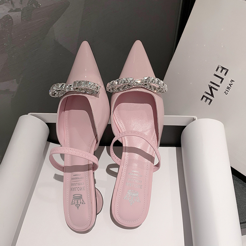 kamames kamames Powder ~ Huge Beauty! Laint Ered Pink Half Head Cool Slippers Women Wear Summer Silver Pointed Shoes