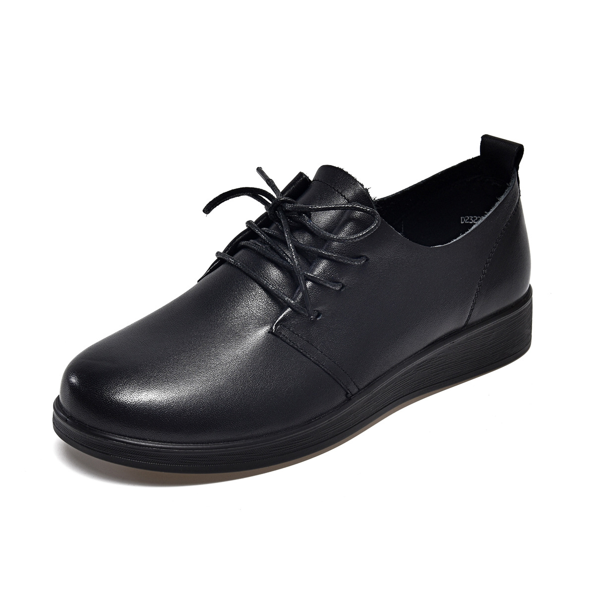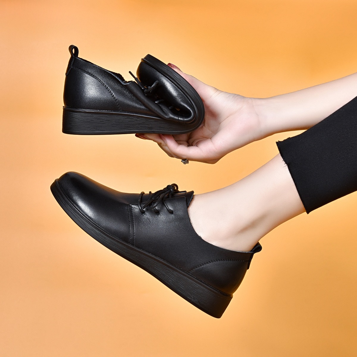 kamames kamames Small Leather Shoes For Women In The Fall Of 2023, The New Head Layer Cowhide Lace-Up Flat-Soled Shoes Are Solid All The Year Round.