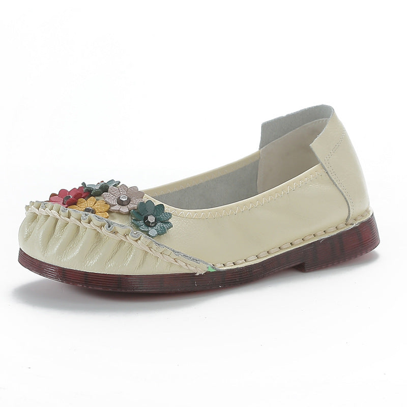 kamames kamames Spring And Summer New Soft-Soled Low-Heeled Women's Shoes National Style Leather Flowers Women's Singles Shoes Comfortable And Soft Mother Shoes