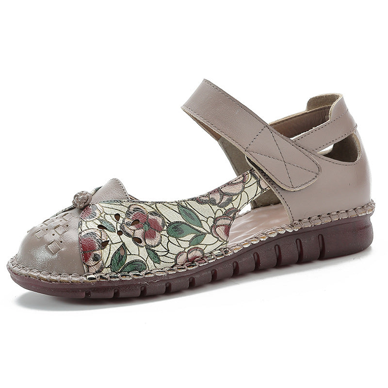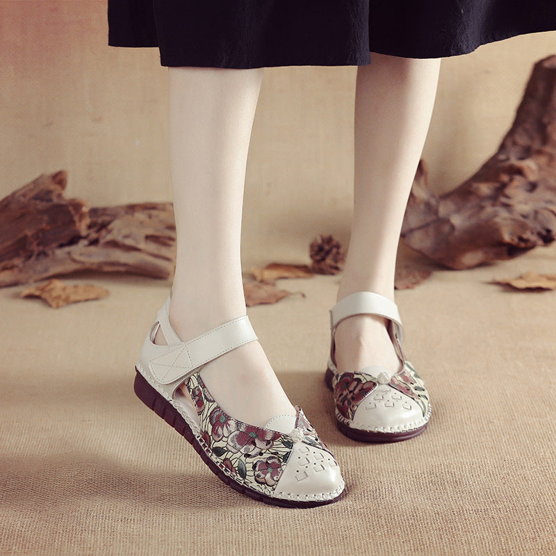 kamames kamames Summer New Leisure Flat Shoes National Style Printed Leather Women's Sandals Breathable And Comfortable Mother Shoes