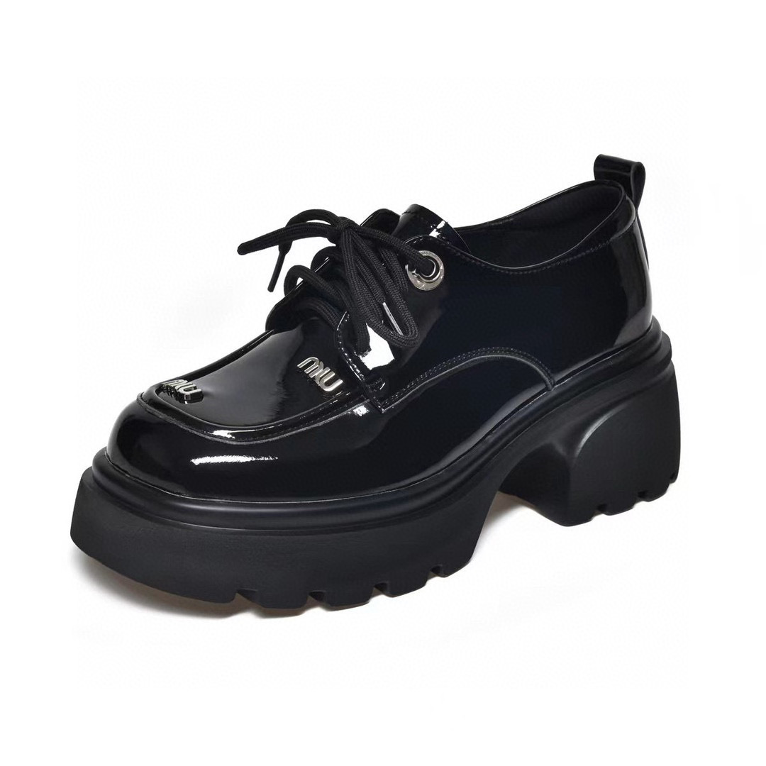 kamames kamames Women With Thick Soles 2023 Autumn And Winter Round Head Tied With Letters Decorative Cow Lacquered Leather Single Shoes Women's Muffins