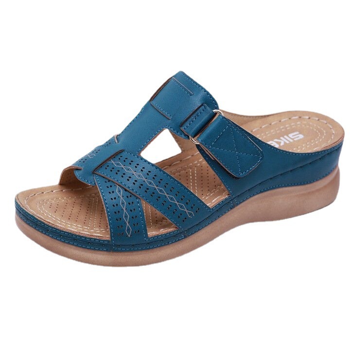 kamames kamames Women's Shoes 2024 Summer New One-Shaped Hollowed-Out Fish Mouth Slope Heel Magic Paste Sandals Slippers Women's Large Size Women's Shoes