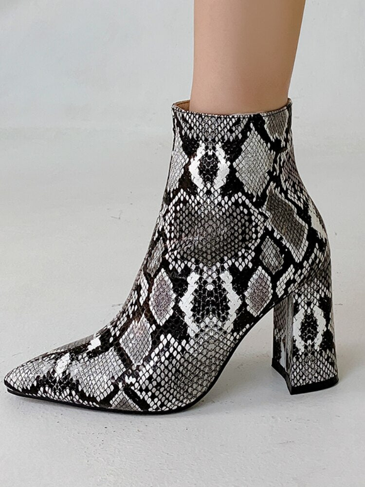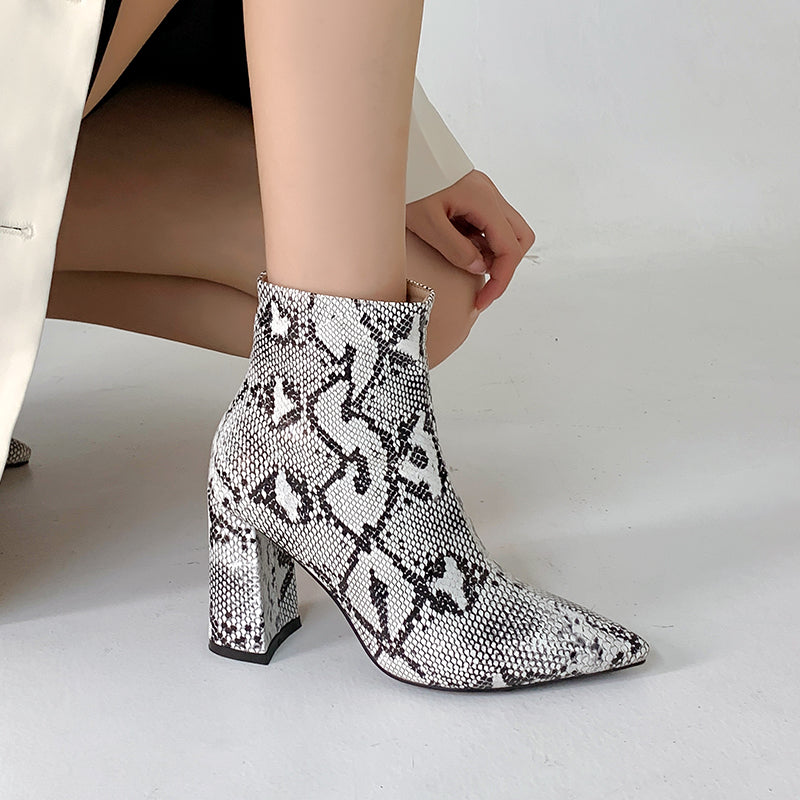 kamames Zipper Women Boots Snake Print Ankle Boots Female Square Heels Sexy Pointed toe Ladies Shoes Footwear Chelsea Boots